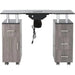 - Dimensions: 40.25" (L) x 17.5" (W) x 30" (H), Table Top= 40.25" x 17.5", Total Height= 30", Outer Distance between cabinets= 38.5" Inner Distance between cabinets: 19" Cabinet size itself: 9.875 X 15 X 22.5" Glass to Cabinet top: 4.75"