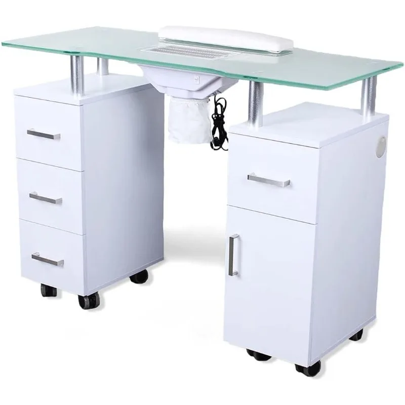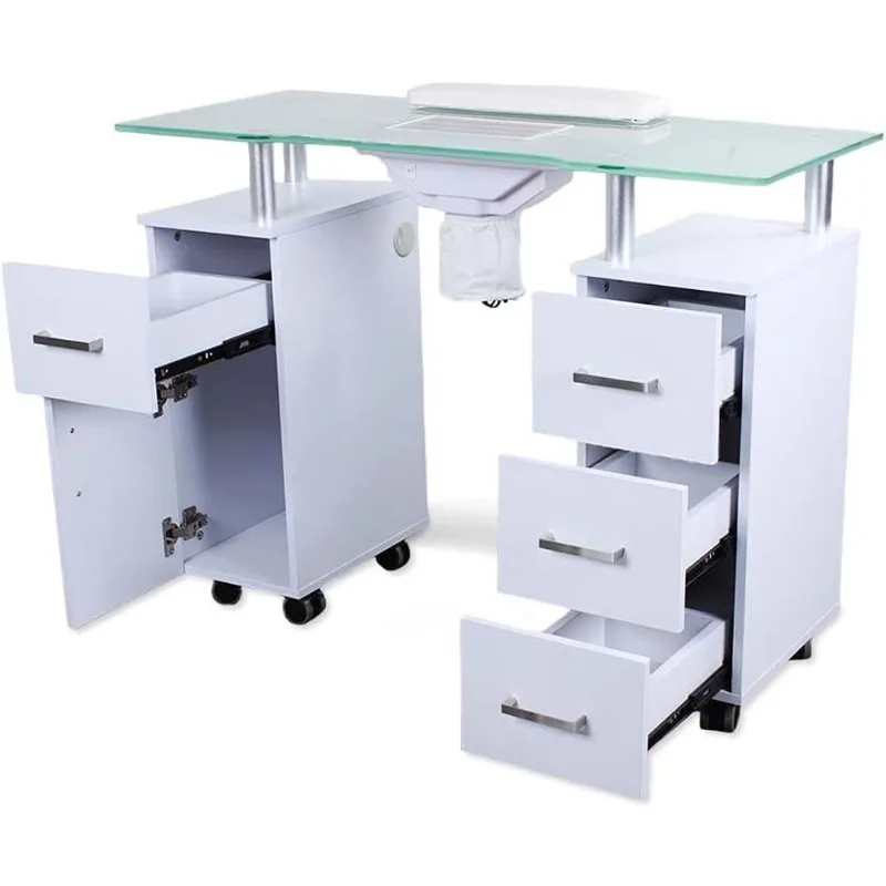 Manicure Table GLASS GLOW WHITE Salon Nail Table Salon Furniture & Equipment