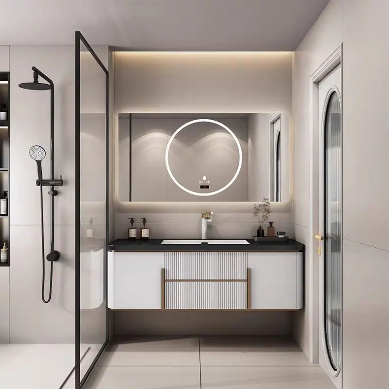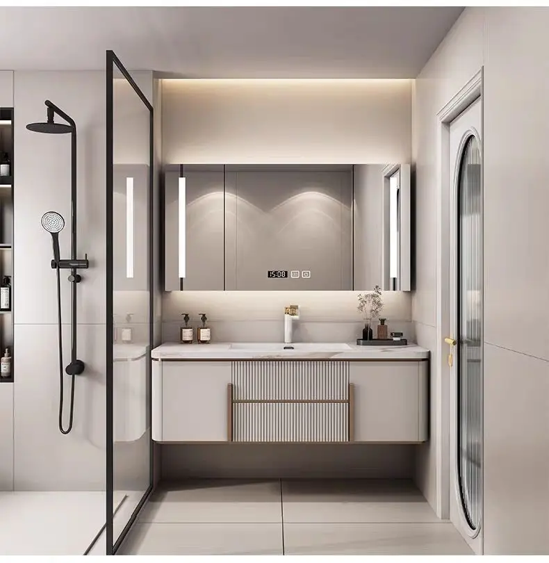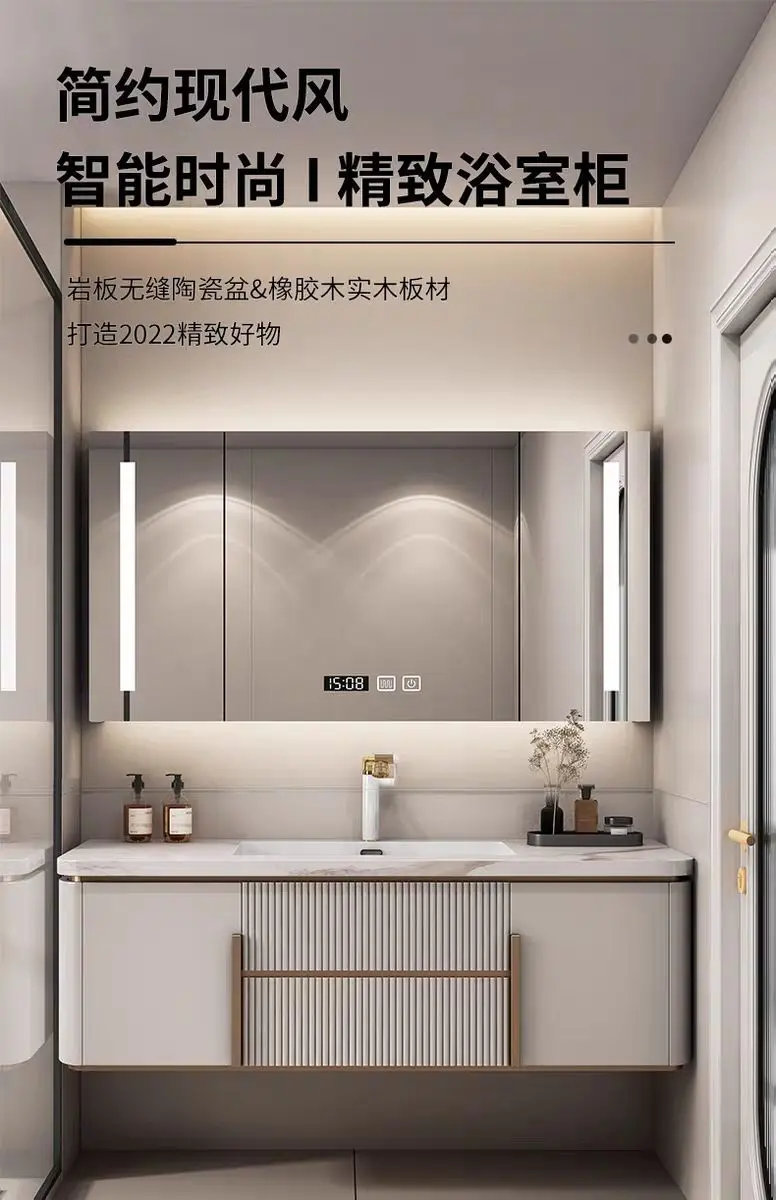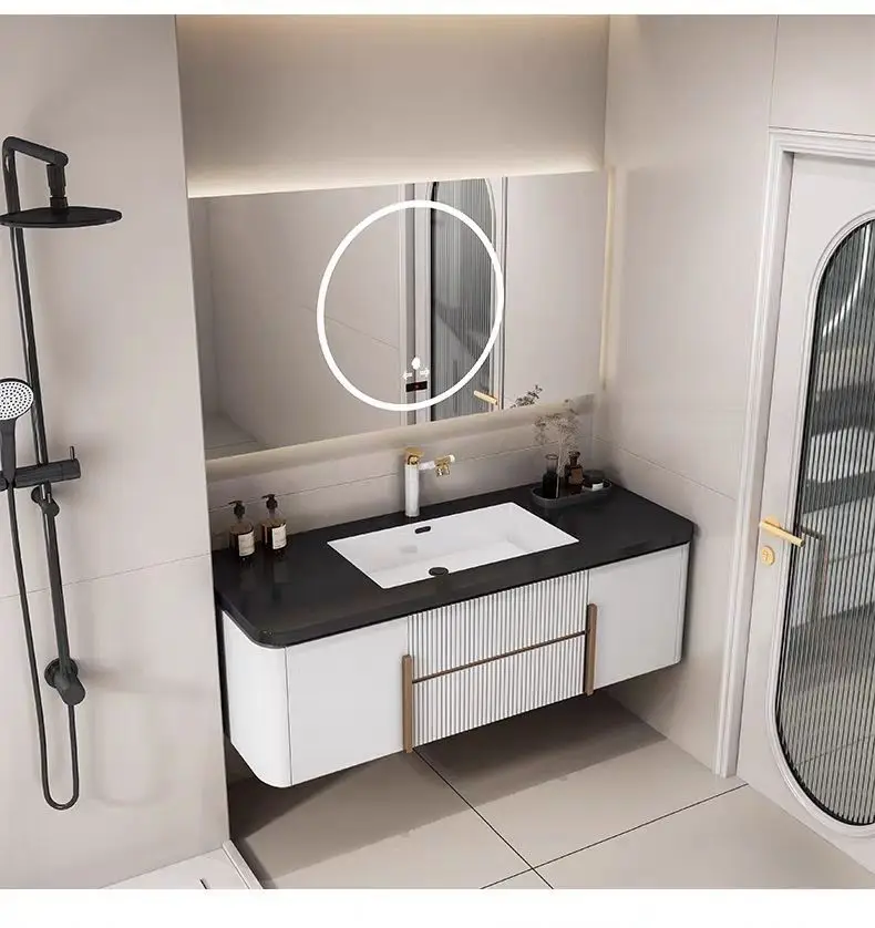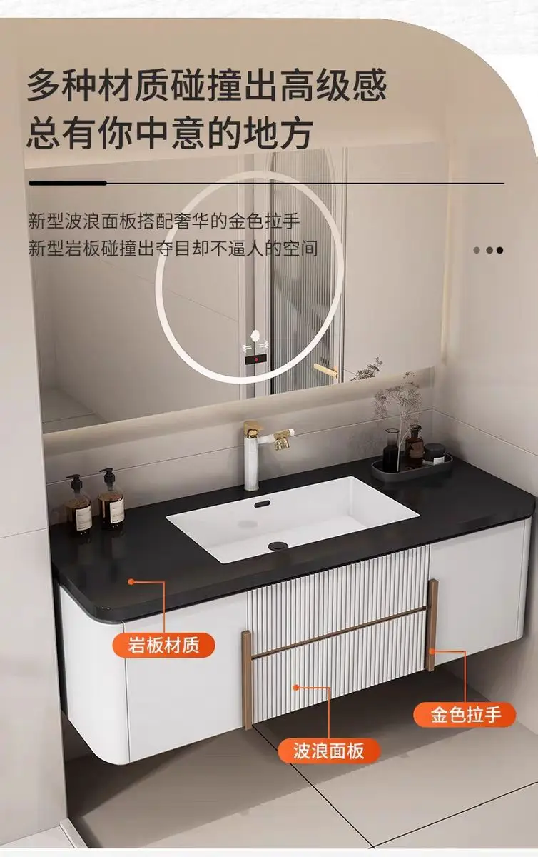 Minimalist Modern Cabinets Rock Seamless Ceramic Integrated Washbasin Sink Cabinet Vanity Bathroom Furniture