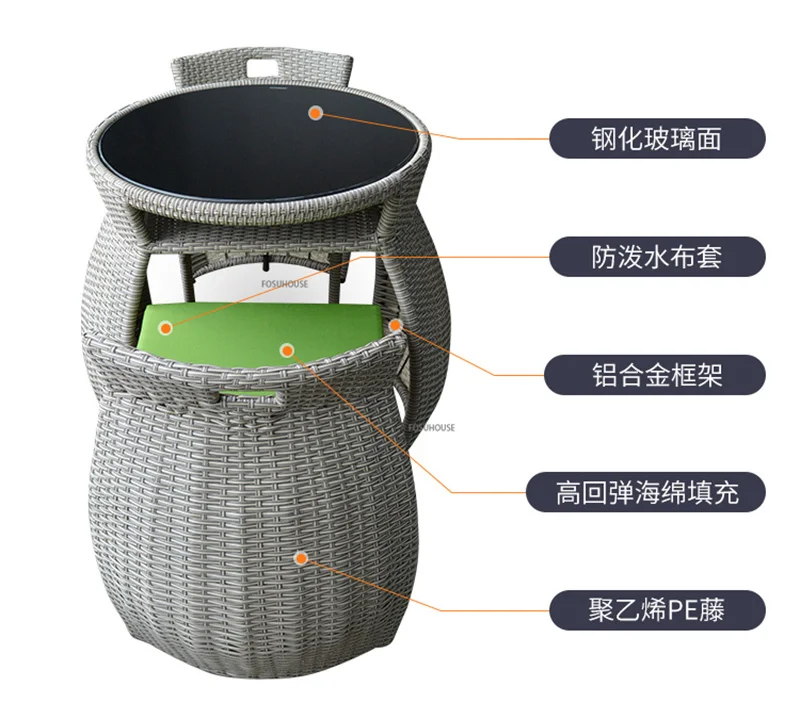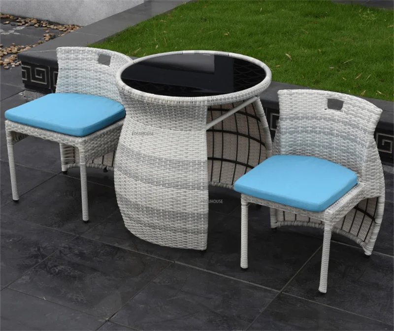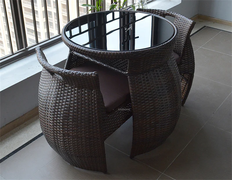 Modern Balcony Small Table and Chair Combination Three-piece Home Garden Outdoor Patio Leisure Rattan Chairs Rattan Furniture