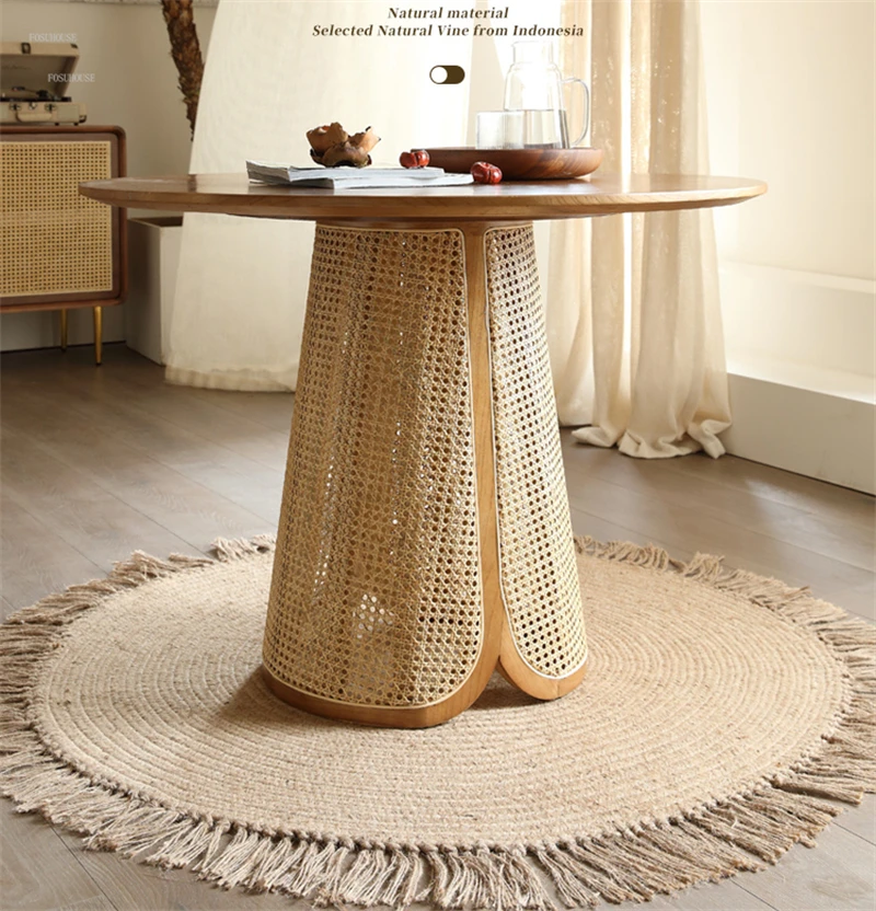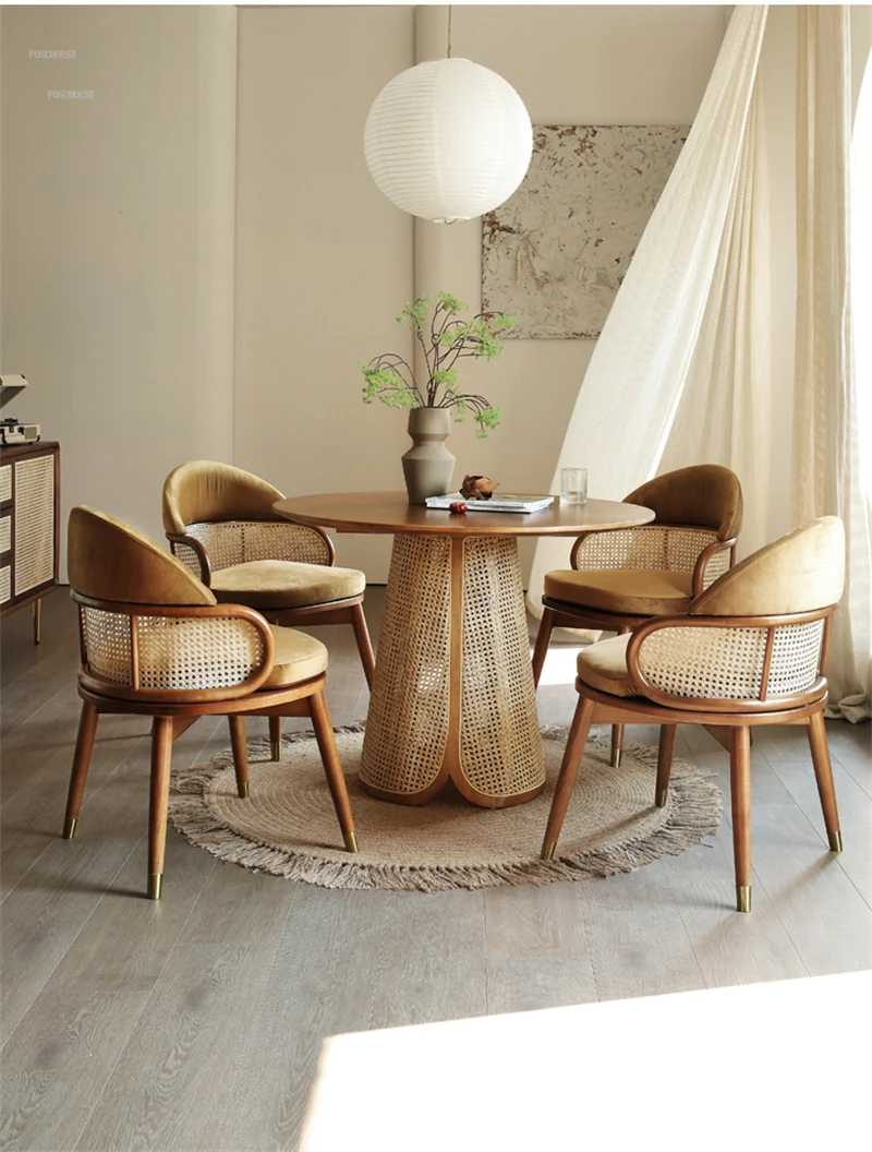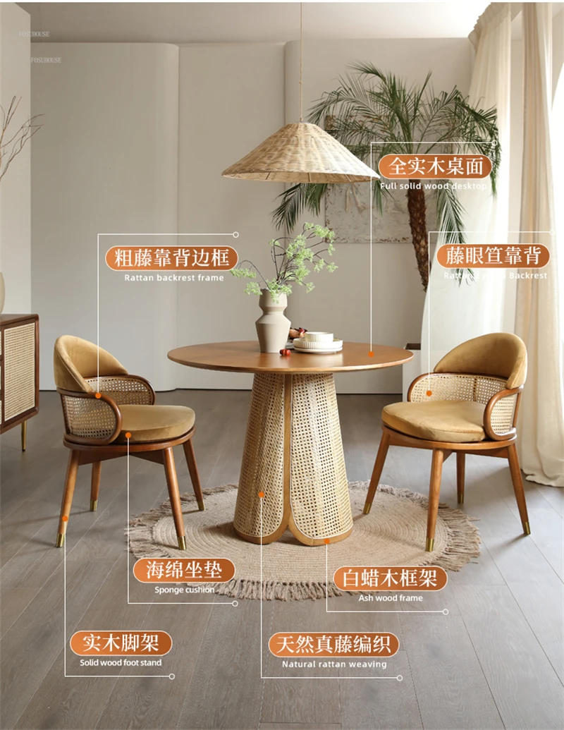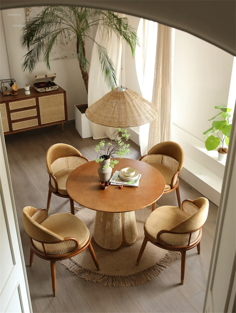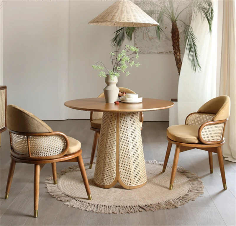 Modern Creative Homestay Dining Room Solid Wood Round Dining Tables Small Apartment Rattan Dining Table and Chair Set Furniture