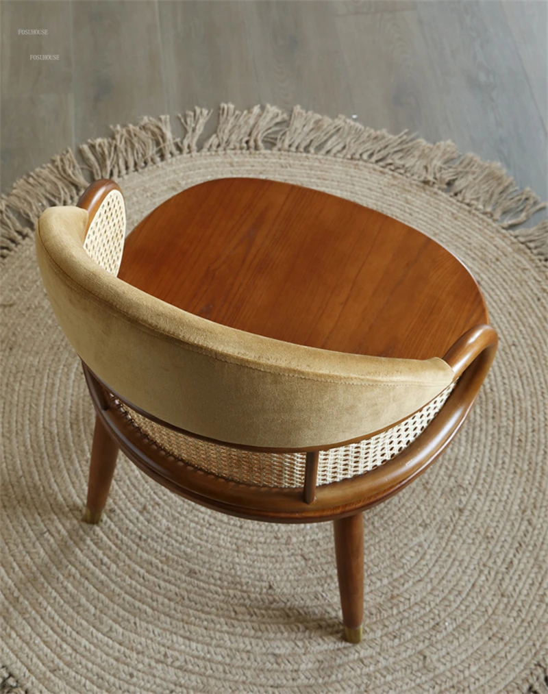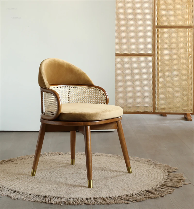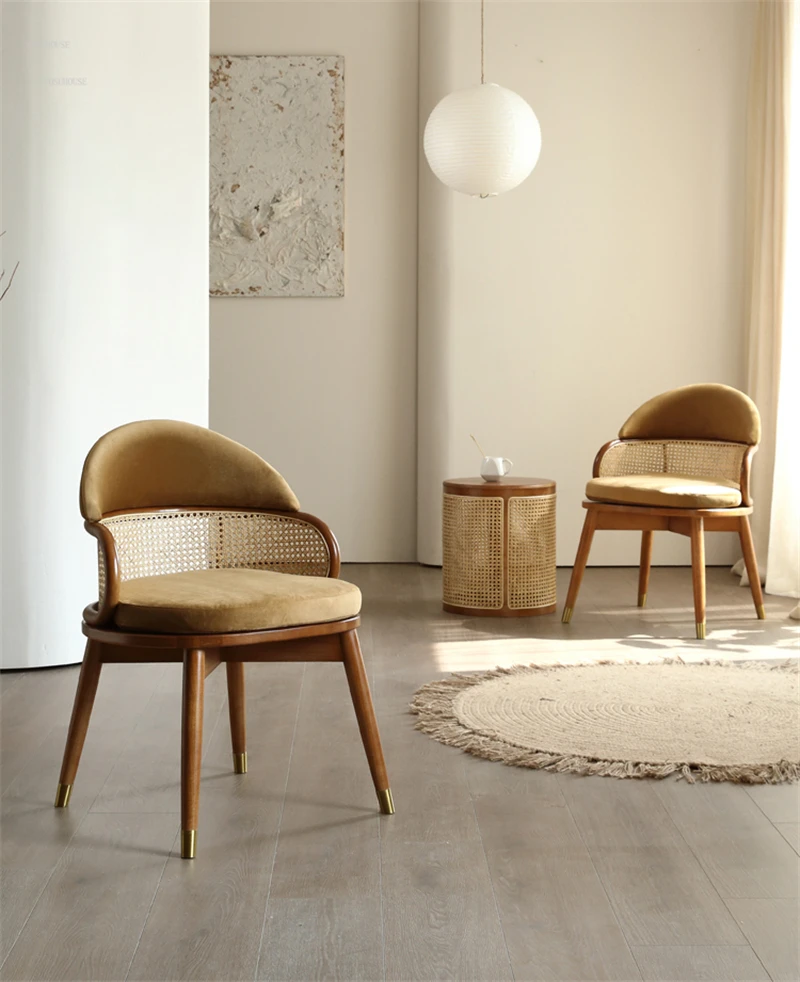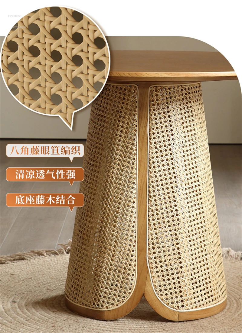 Modern Creative Homestay Dining Room Solid Wood Round Dining Tables Small Apartment Rattan Dining Table and Chair Set Furniture