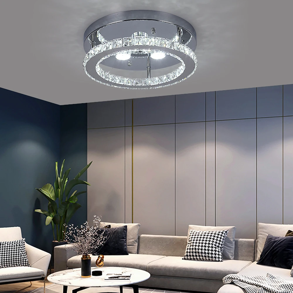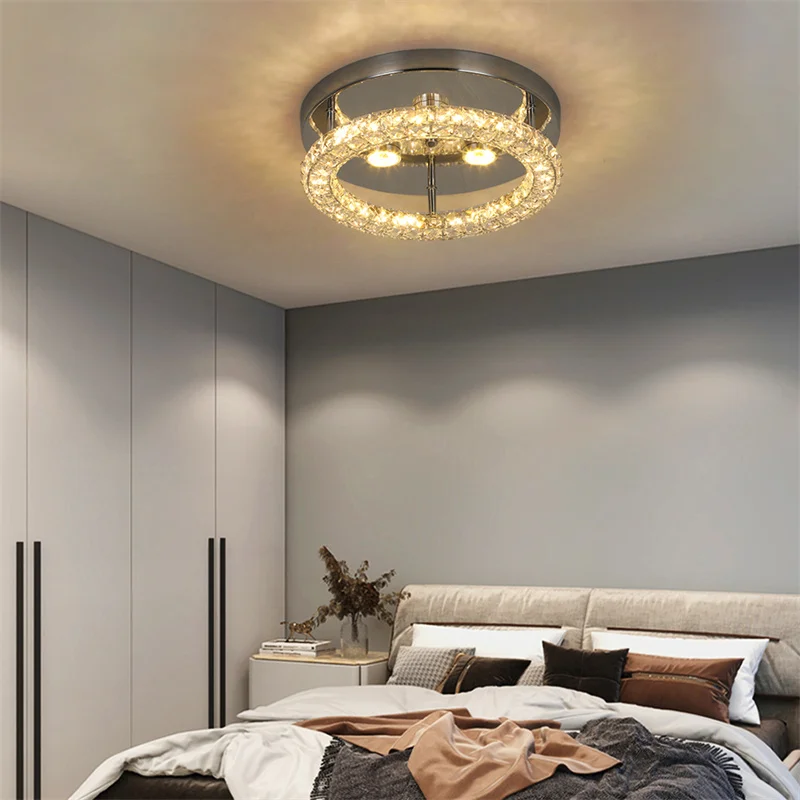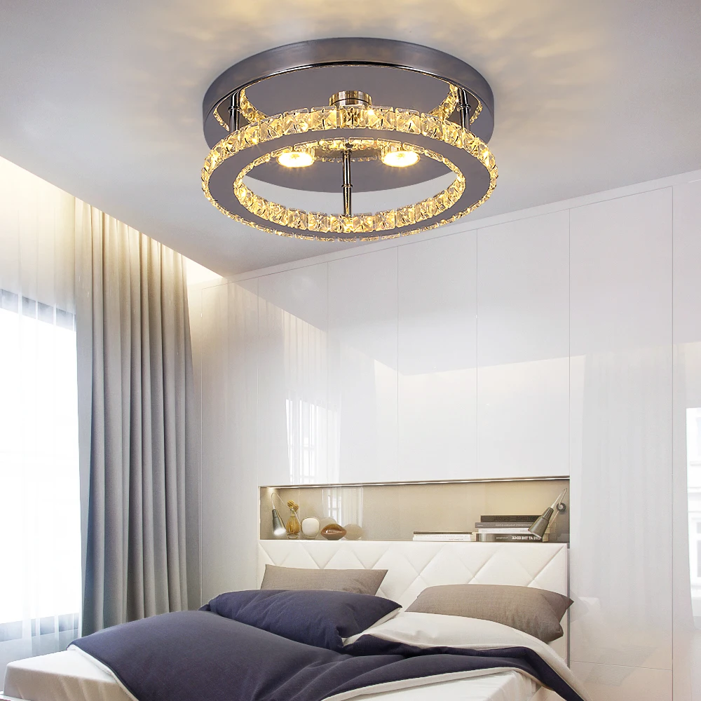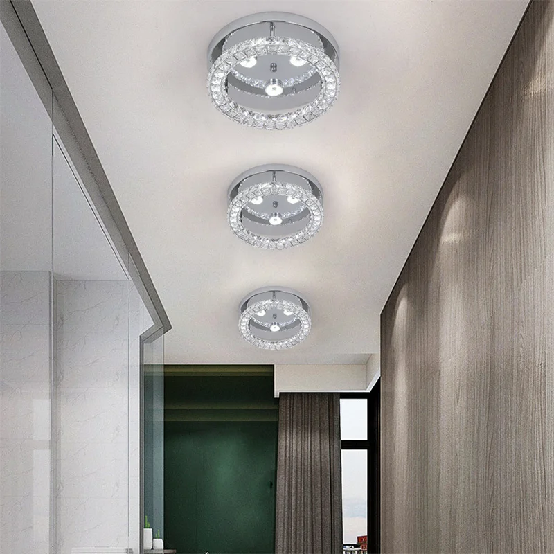 Modern Crystal Chrome Ceiling Lamps LED Ring Corridor Suspension Lamp Stainless Steel Aisle Light Fixtures Lustre Chandelier