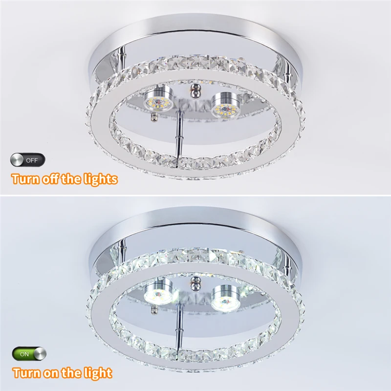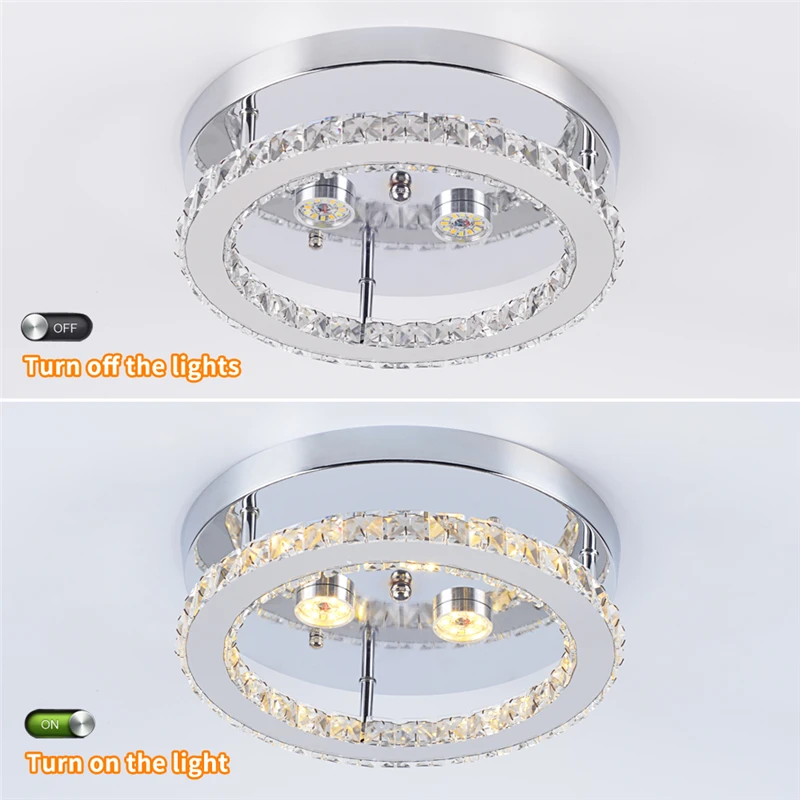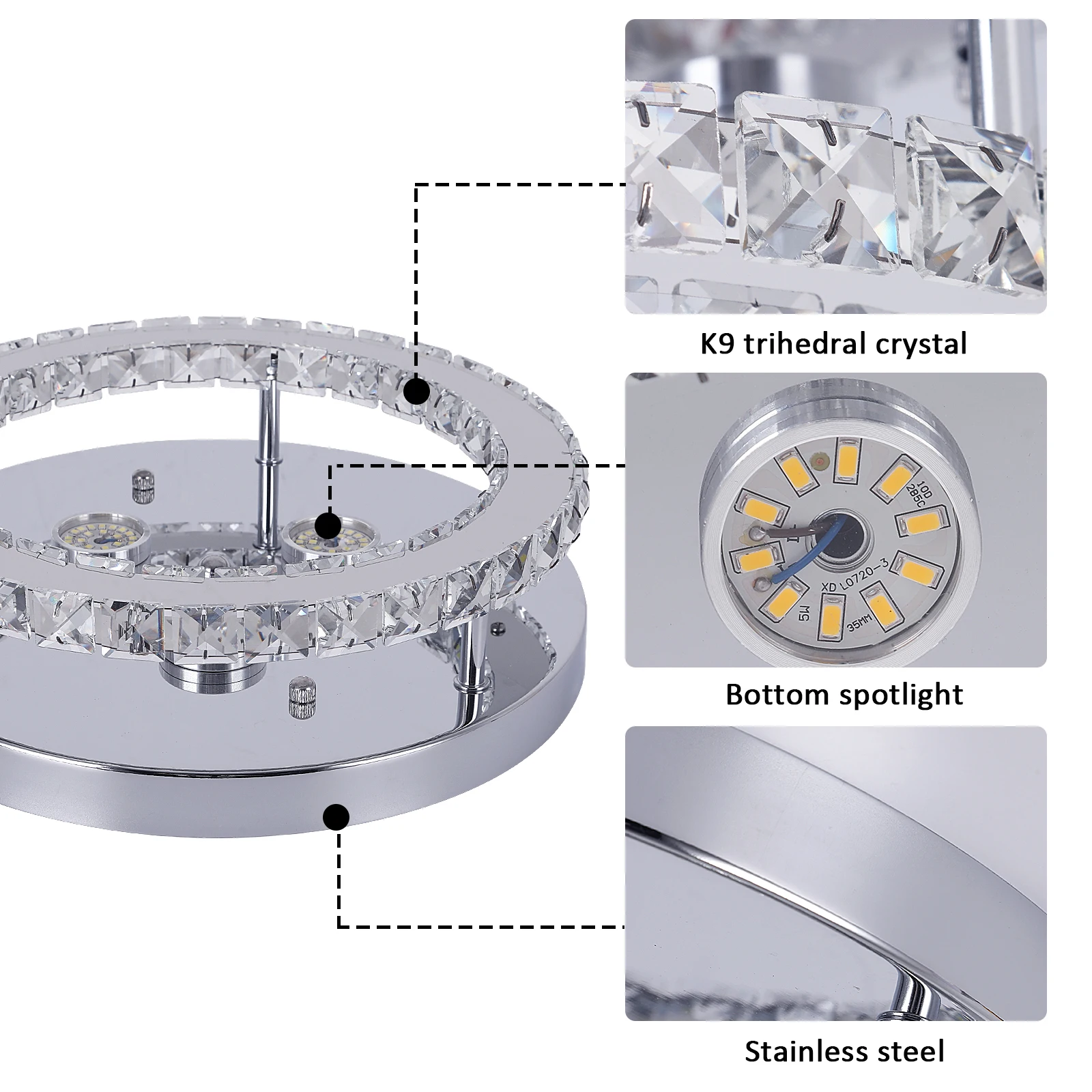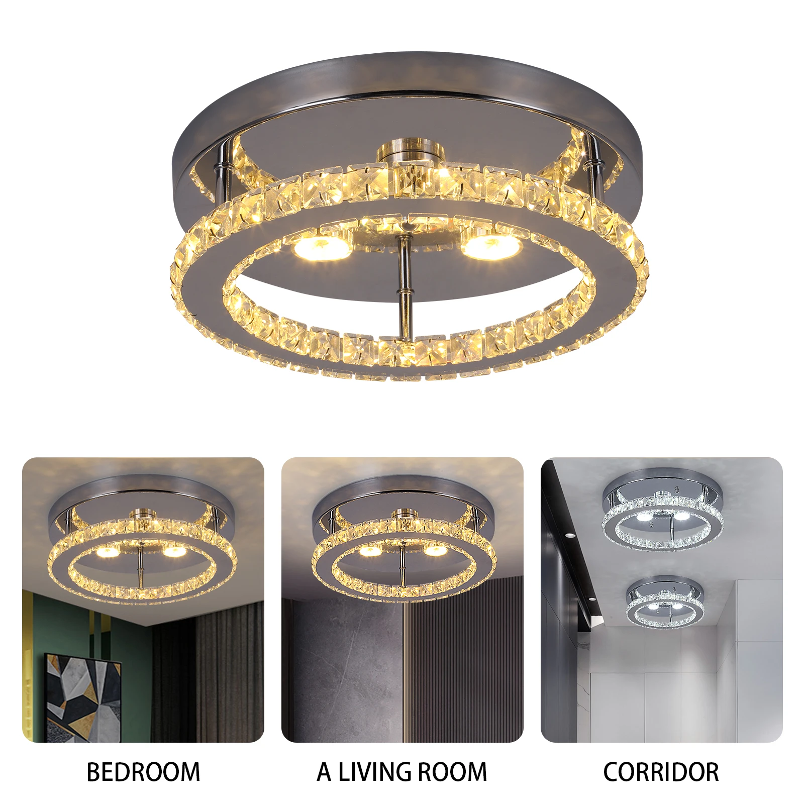 Modern Crystal Chrome Ceiling Lamps LED Ring Corridor Suspension Lamp Stainless Steel Aisle Light Fixtures Lustre Chandelier