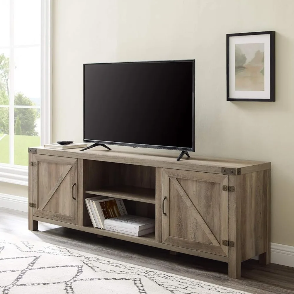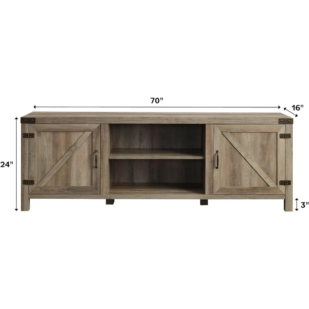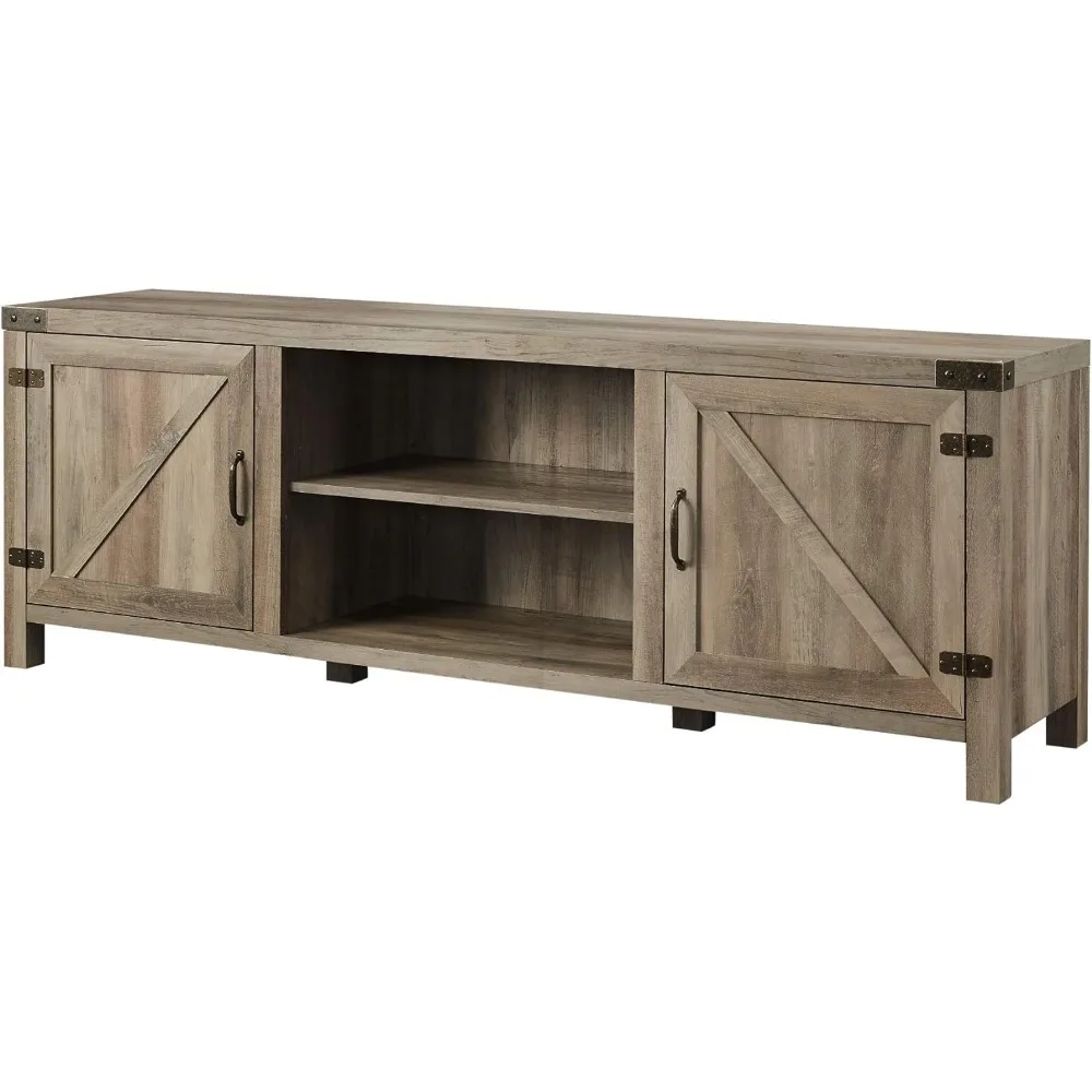Modern double barn door TV cabinet, suitable for up to 80 inch TVs, with adjustable shelves, durable structure