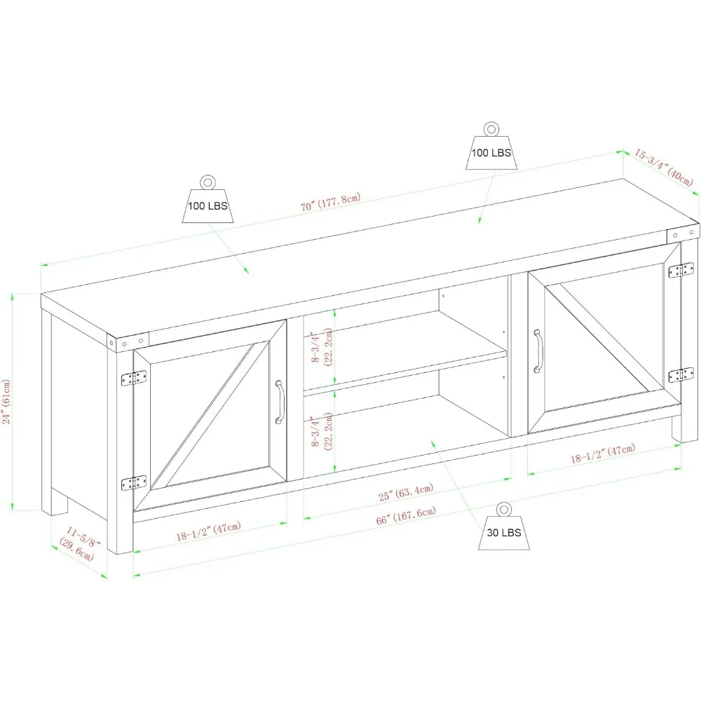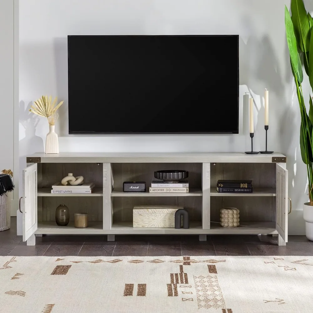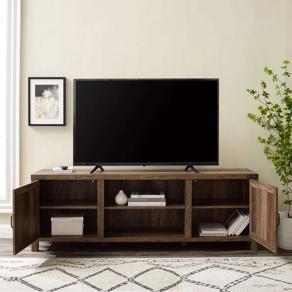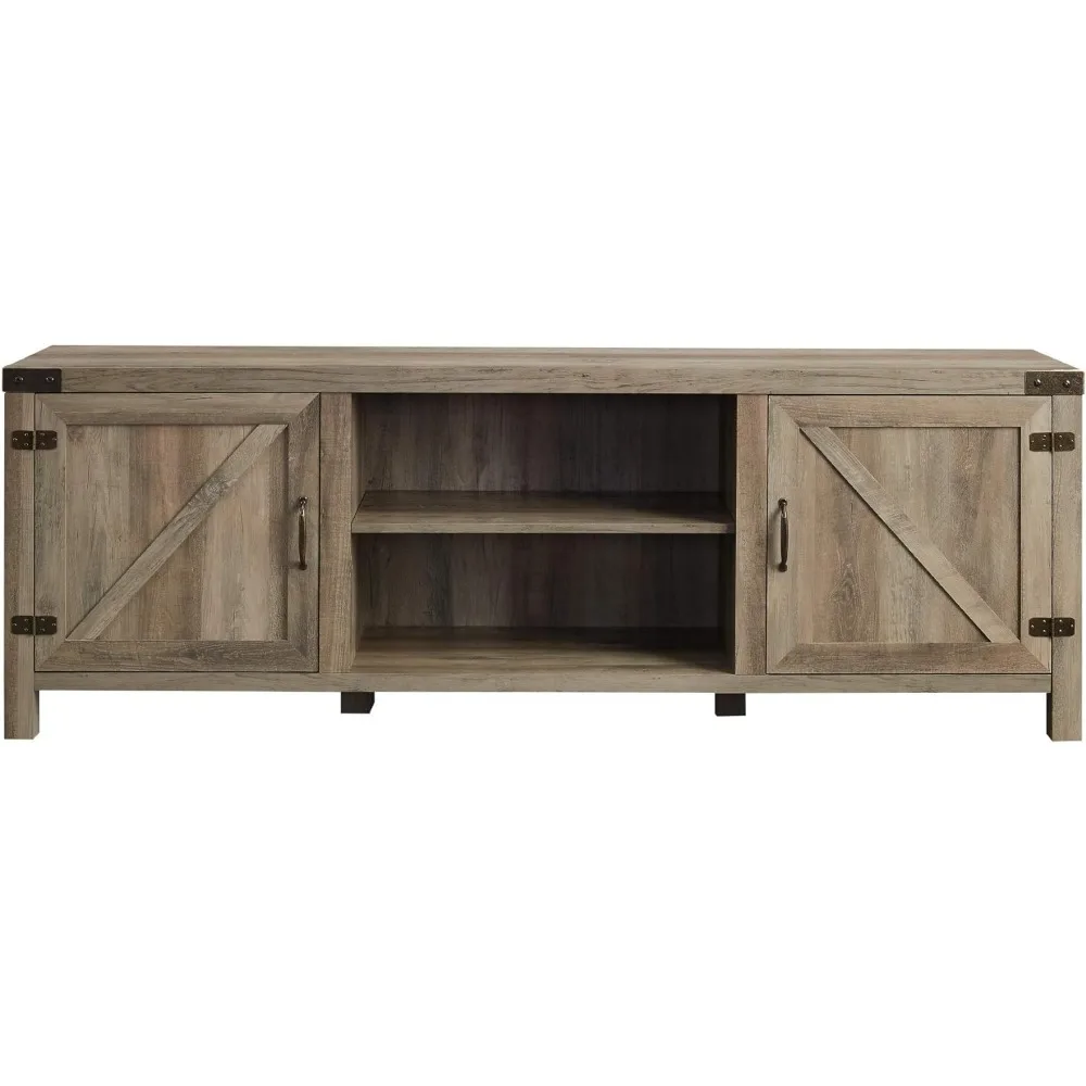 Modern double barn door TV cabinet, suitable for up to 80 inch TVs, with adjustable shelves, durable structure