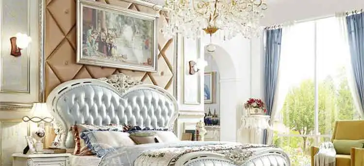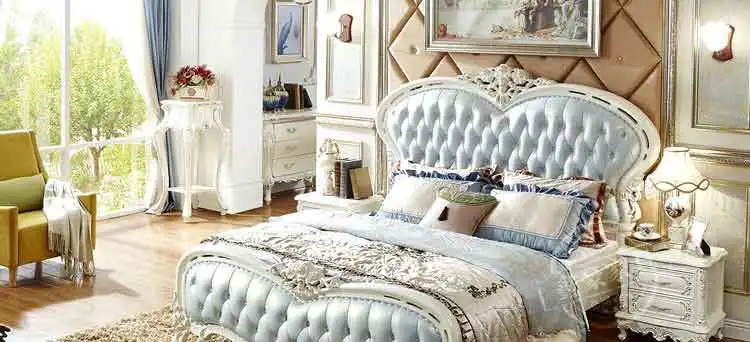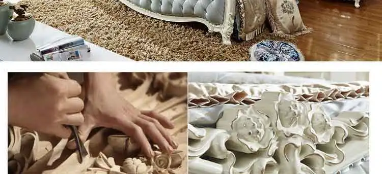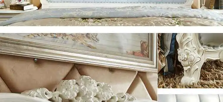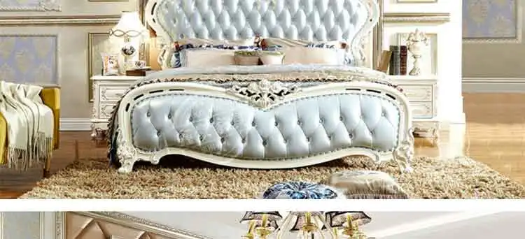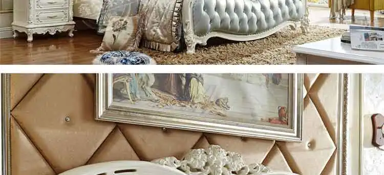 modern european solid wood bed 2 people Fashion Carved leather french bedroom furniture xhc0010