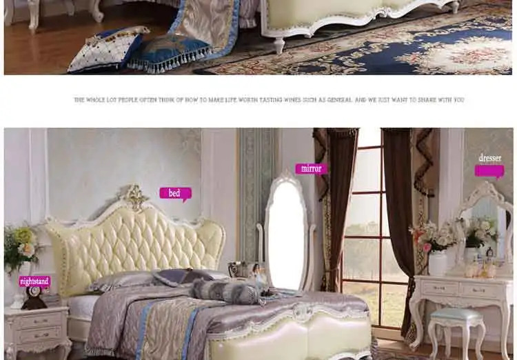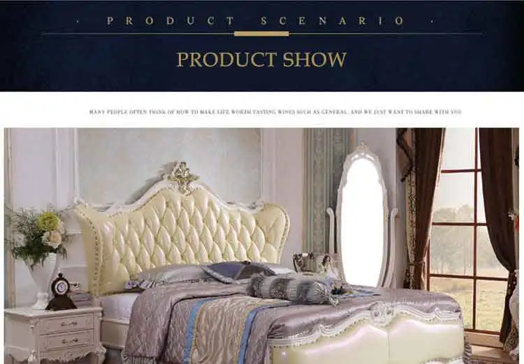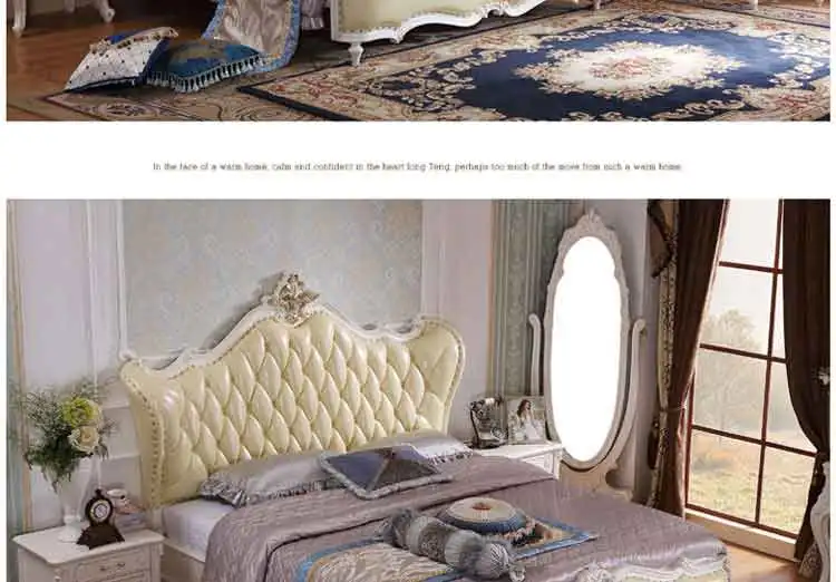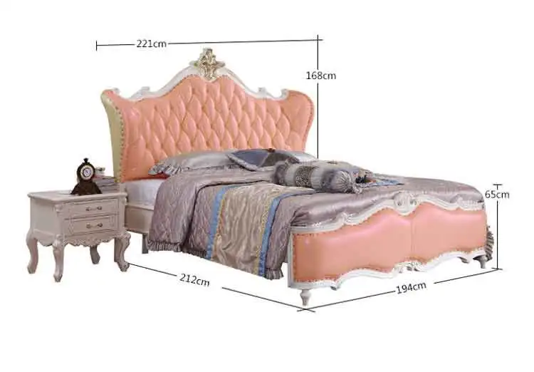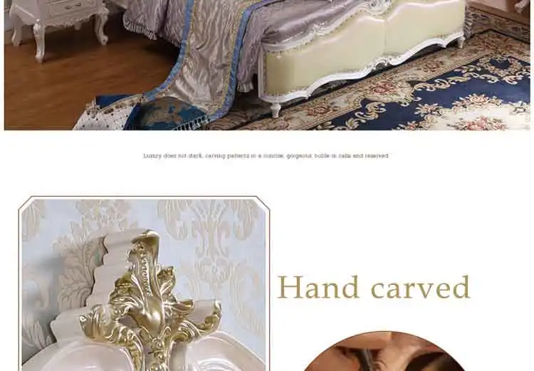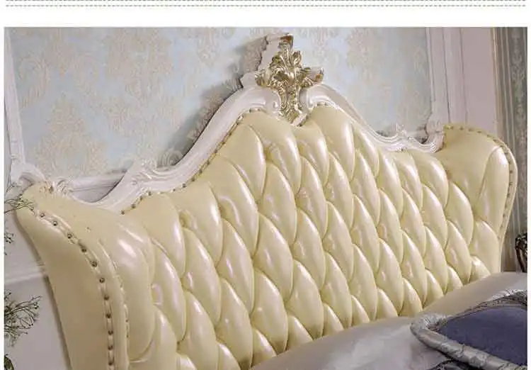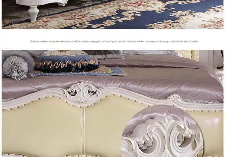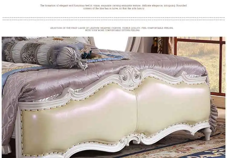 modern european solid wood bed 2 people Fashion Carved leather french bedroom furniture xhc007