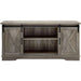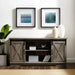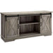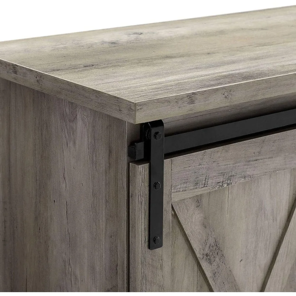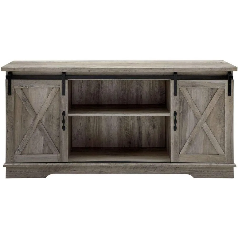 Modern farmhouse sliding barn door TV bracket, suitable for TVs under 65 inches, gray living room storage cabinet TV cabinet