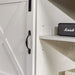 Slide open your new barn doors and showcase your best media components with this charming farmhouse TV stand. This rustic console hosts three adjustable shelves, perfect to for holding all your favorite video games, movies, or home décor. Its two-tone look offers a chic, country pop to any room. Smooth, powder-coated steel allows a seamless glide to the darling barn door design.