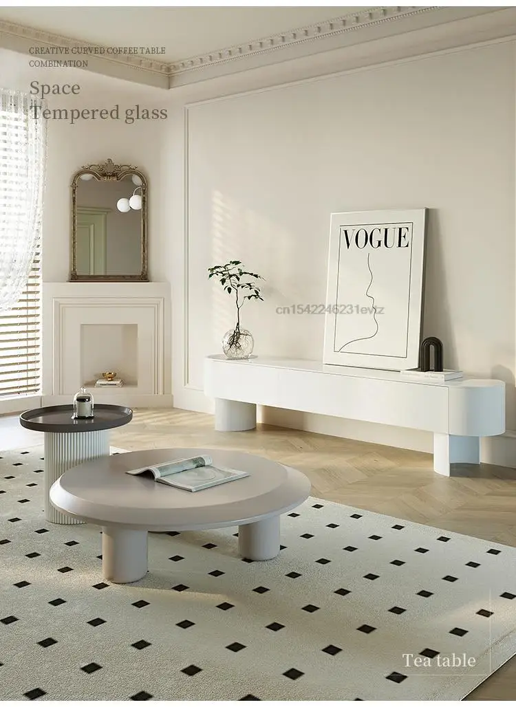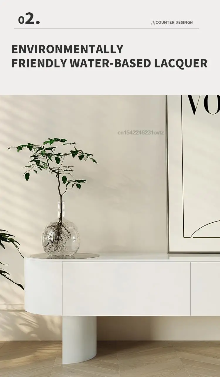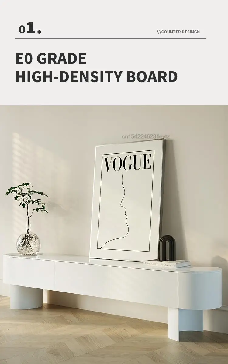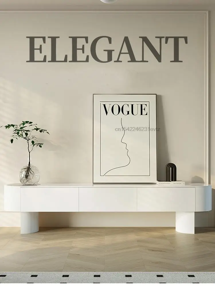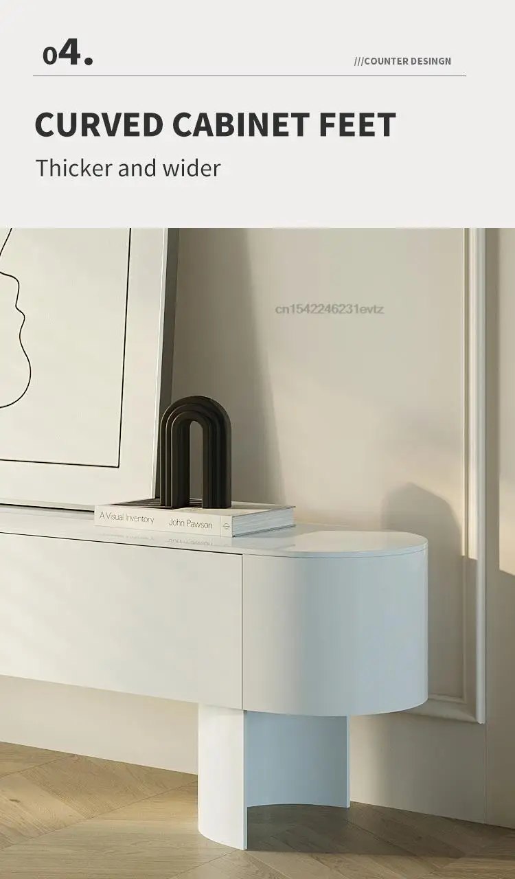 Modern Living Room Furniture High Curved Cabinet Feet Round Corner Television Stands Large Storage Space Tv Cabinets In White