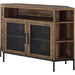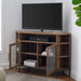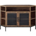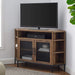 Modern Metal Mesh and Wood Corner Universal TV Stand with Open Shelves Cabinet Doors Storage 48 Inch, Rustic Oak