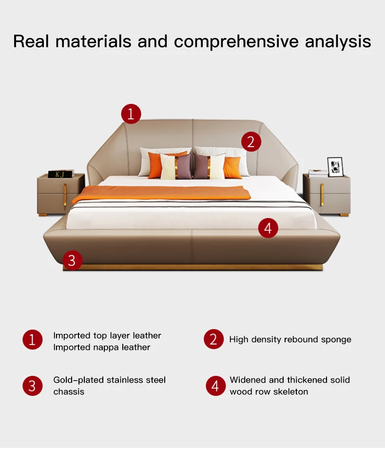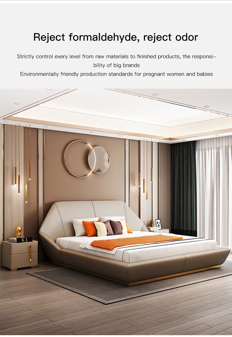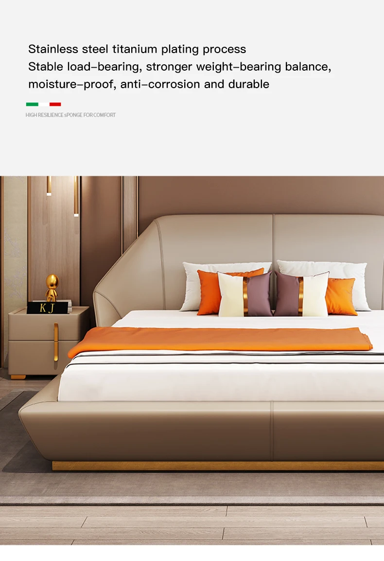 Modern Minimalist Double Bed Size Designer Bed With Mattress Leather Bedroom Furniture Queen King Size Bed Frame