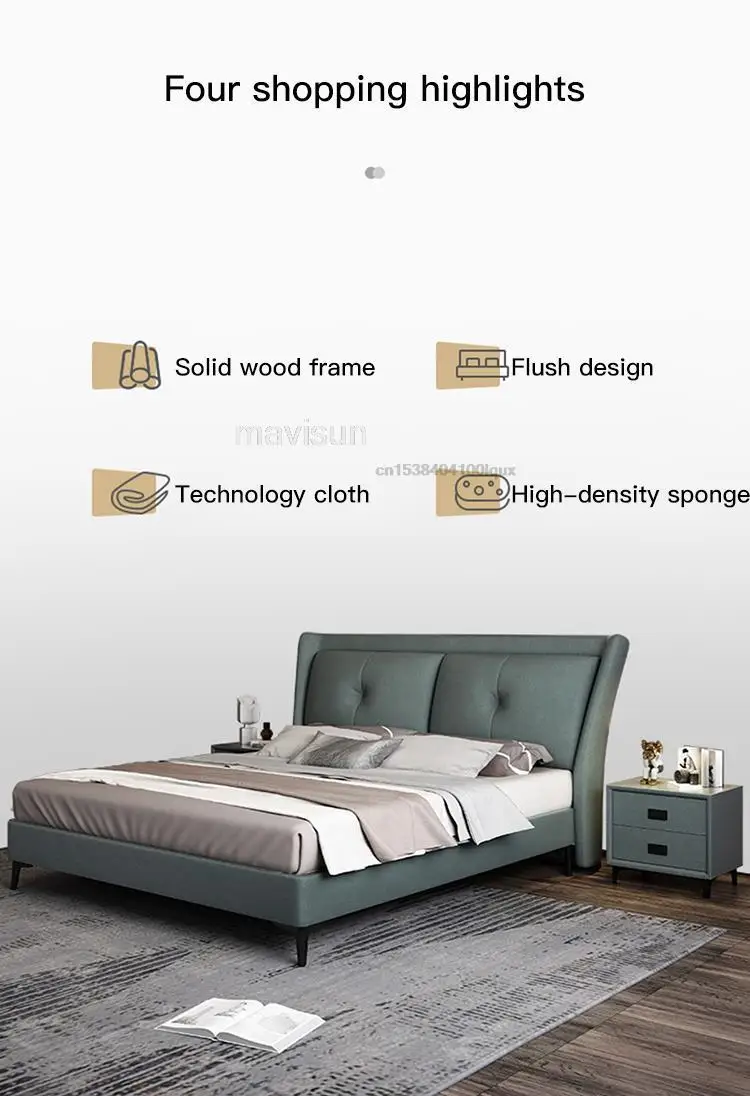 Modern Minimalist Double Technology Fabric Bed Master Bedroom Upholstered Platform Bed 1.8 Meters High-End Bedroom Furniture
