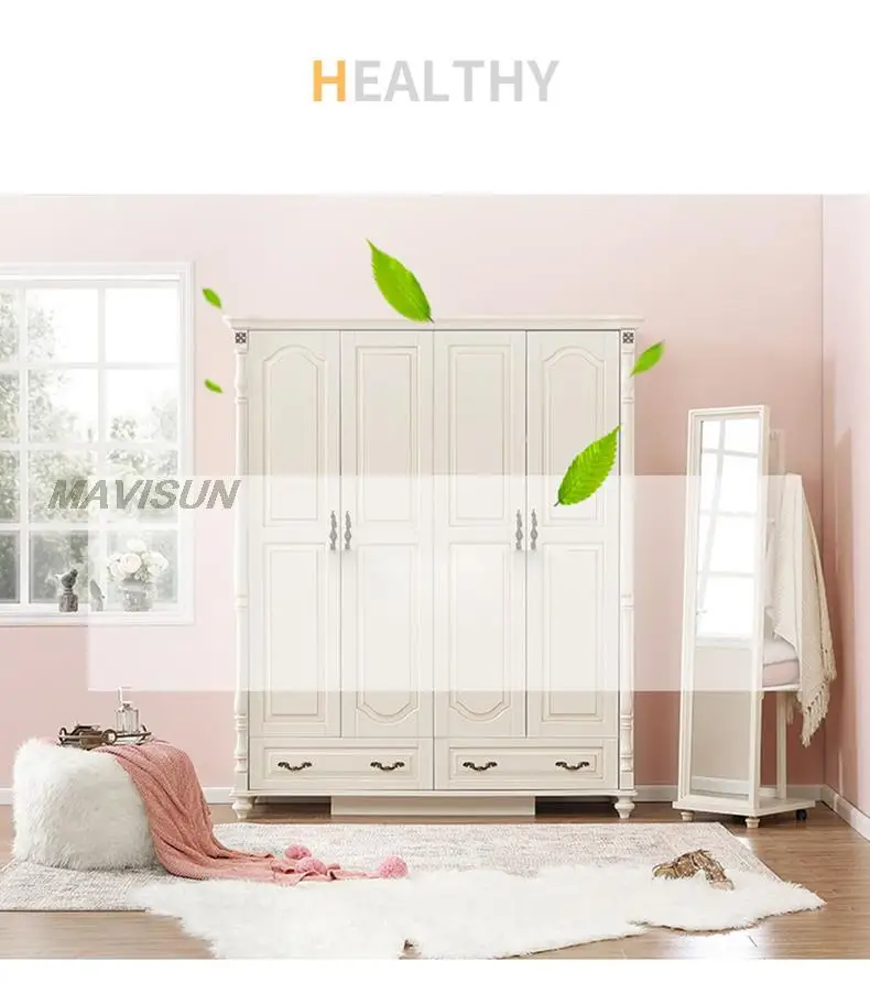 Modern Minimalist Solid Wood Wardrobe Closet Spacious Storage Cabinet For Clothes European Style Bedroom 4-Door Furniture