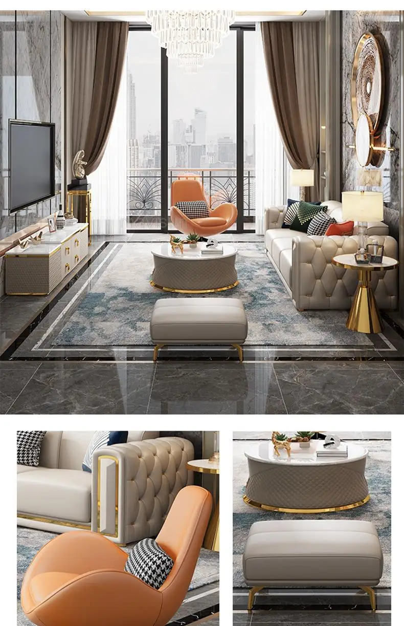 Modern Minimalist White Leather Sofa Combination Luxury Living Room Office Furniture Large Sofas Set Muebles Home Furniture