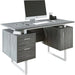Cubism is sleek and contemporary, this desk is the perfect combination of function, durability and design in a modern form. With clean lines, a floating top work station and sleek track metal legs, this desk will add pizzazz to any home office. Featuring two storage drawers and a file cabinet to help keep you organized with a large desktop surface to provide plenty of room for all your hardware and working needs. Color: Grey