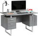 Modern Office Desk with Storage, Wide Home Office Computer Desk with Storage Cabinet and Hanging File Cabinet, Gray