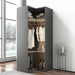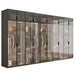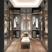 L Shaped Wood Grain Walk In Closet Of Best Bedroom Wardrobe with large shoe cabinet |