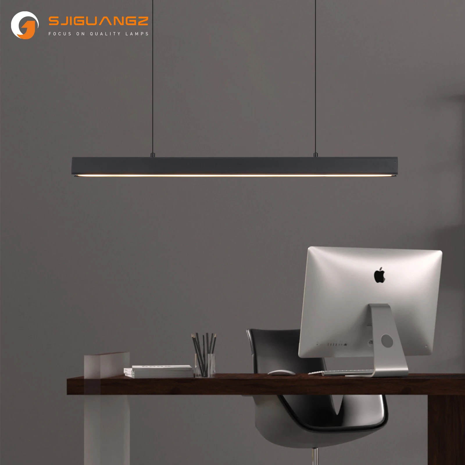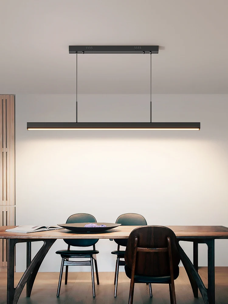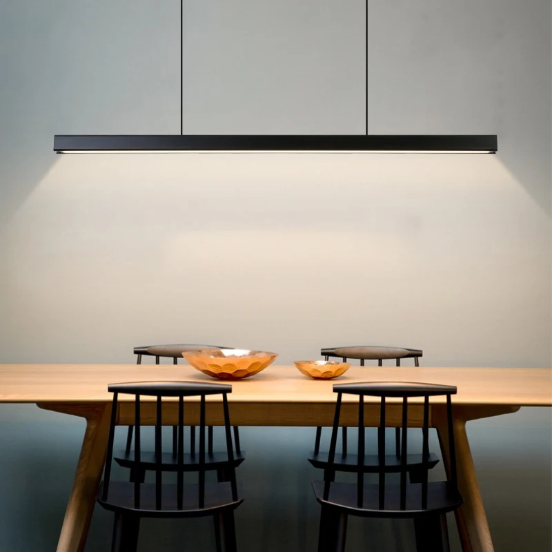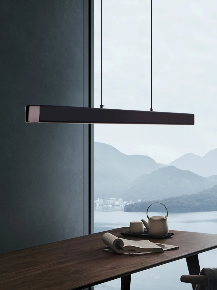 Modern simple long linear pendant light LED dimming black restaurant bar study office billiard hall chandelier
