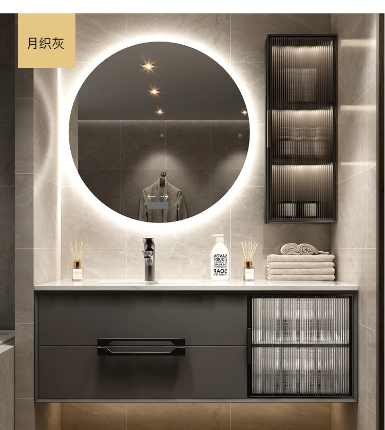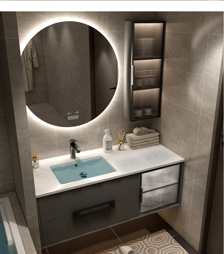 Modern Simple Slate Integrated Basin Hang Bathroom Vanity Cabinet With Sink Combination Light Hand Wash Smart Toilet