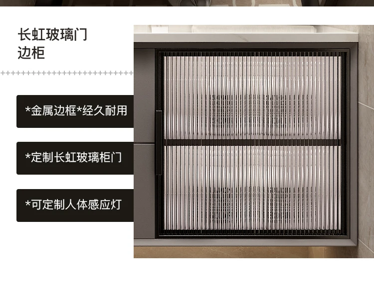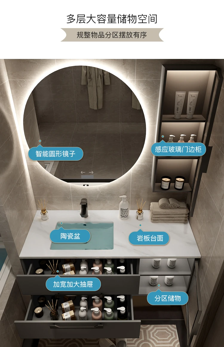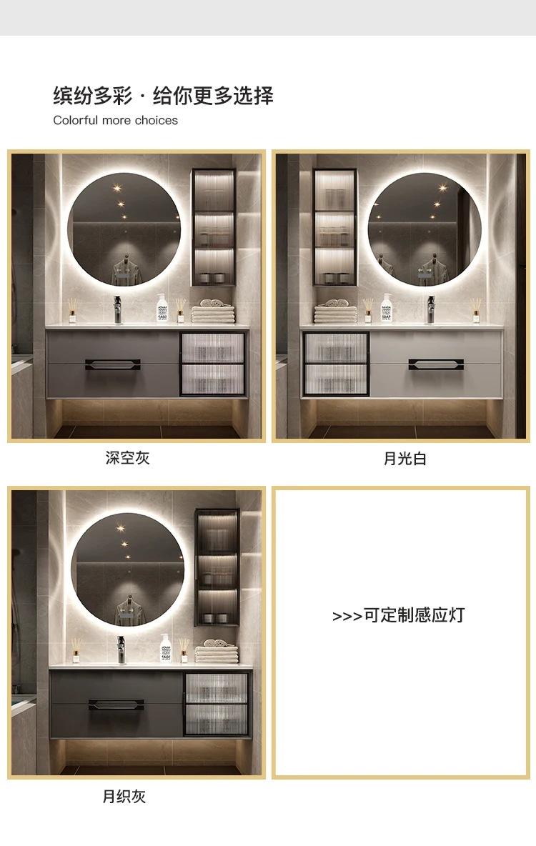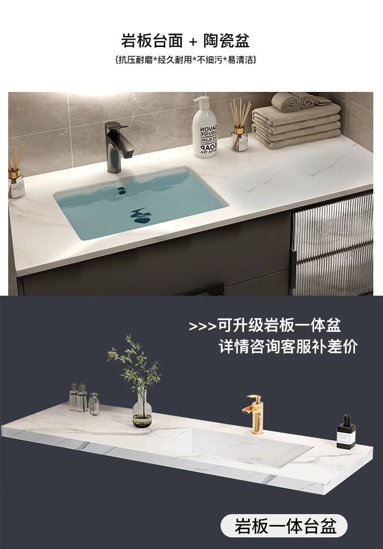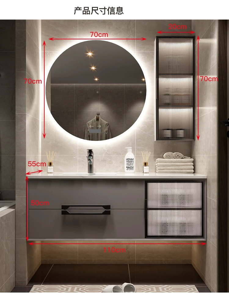 Description: The Modern Simple Slate Integrated Basin Hang Bathroom Vanity Cabinet with Sink Combination is a luxurious and smart choice for your bathroom. The cabinet features a seamless integration of the basin and sink for a clean and streamlined look. The cabinet is made with high-quality materials, including slate, to ensure durability and longevity. The light feature adds a touch of elegance to the bathroom, creating a warm and inviting atmosphere. The sink is perfect for hand washing, making it a convenient and practical choice for everyday use. With its modern and simple design, this bathroom vanity cabinet will complement any bathroom decor and upgrade the overall look of your space. The cabinet's storage space provides ample room for all your bathroom essentials, keeping everything organized and within reach. This combination is floor-standing, providing stability and a sleek appearance. Whether you're remodeling your bathroom or just looking to upgrade, this Modern Simple Slate Integrated Basin Hang Bathroom Vanity Cabinet with Sink Combination is an excellent choice.