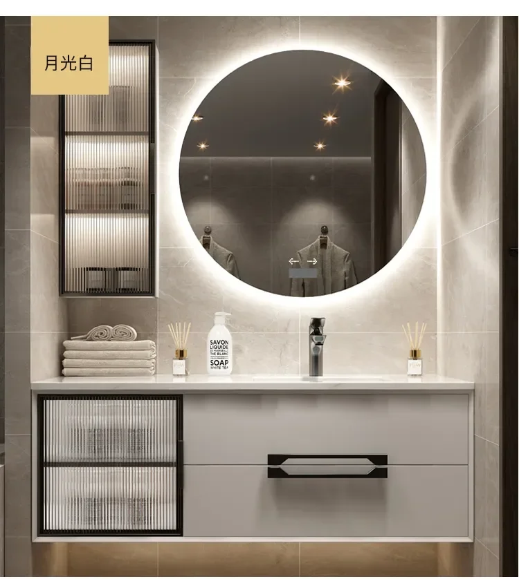 Modern Simple Slate Integrated Basin Hang Bathroom Vanity Cabinet with Sink Combination Light Luxury Hand Wash Smart Toilet
