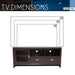 LONG DESCRIPTION : This Techni Mobili TV Stand, for TVs up to 60", is designed to fit any bedroom or family room. It includes one storage cabinet with a glass door and two drawers for additional storage space. The TV stand also features two open shelves to help store your electronics and organize your cords with a back panel opening. The cabinet is made of compressed wood that is resistant to scratches with a laminate surface. Important: Holds TV's up to 60" when TV is measure diagonally. Actual unit is 55" wide but TV overhang on either side is suitable. Weight capacity 120 lbs. Color: Wenge