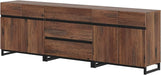 Modern TV Stand for TVs up to 100 inch,3 in 1 Console with Adjustable Shelves and 3 Drawers, Media Console for Living Room,Brown