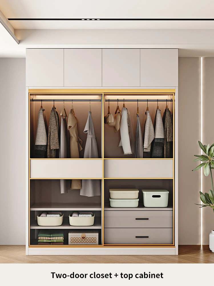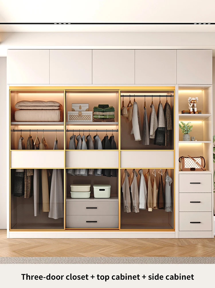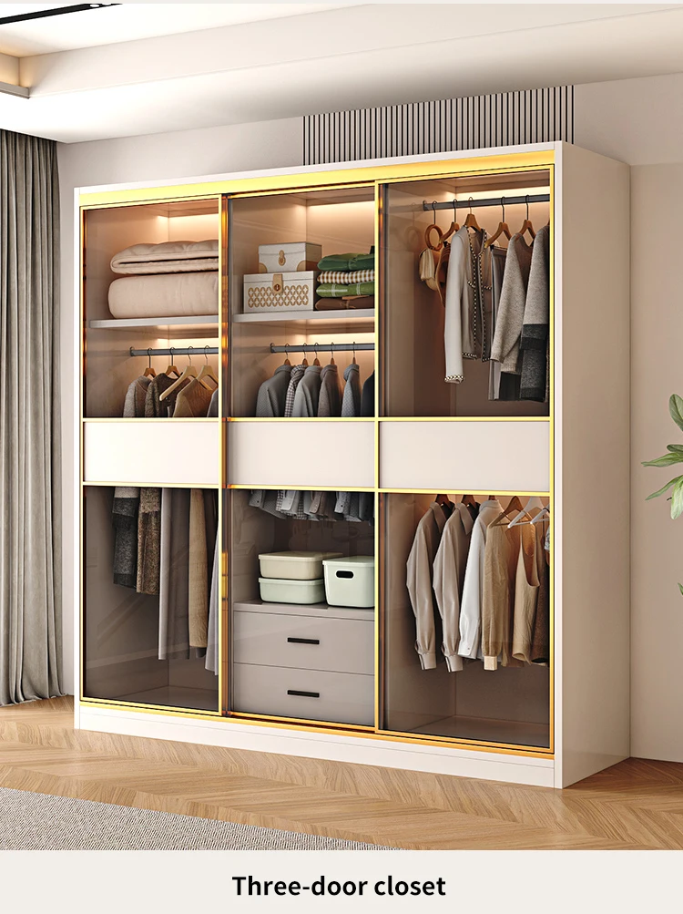 Modern Wardrobe With Transparent Glass Sliding Door Modern Bedroom Furniture Garment Clothes Closet Bedroom Cabinet For Clothes
