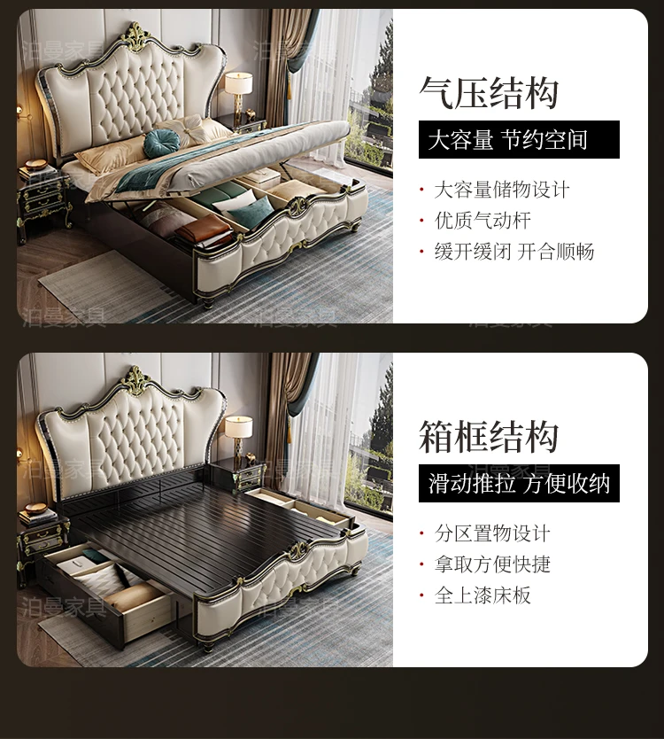 Multifonction Couple Bed European Queen Size Storage Space Princess Bed Modern Luxury Cama De Casal Luxuosa Home Furniture