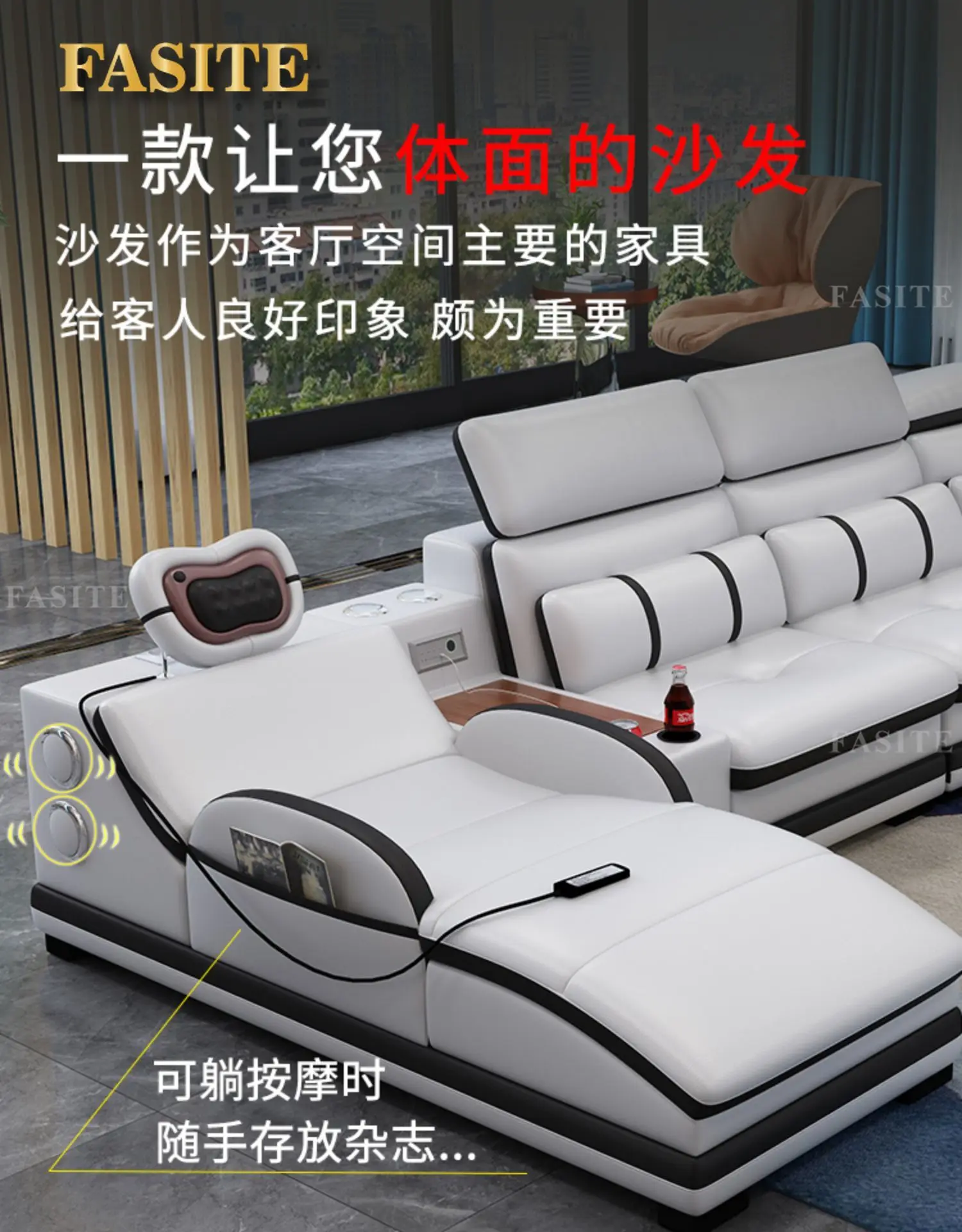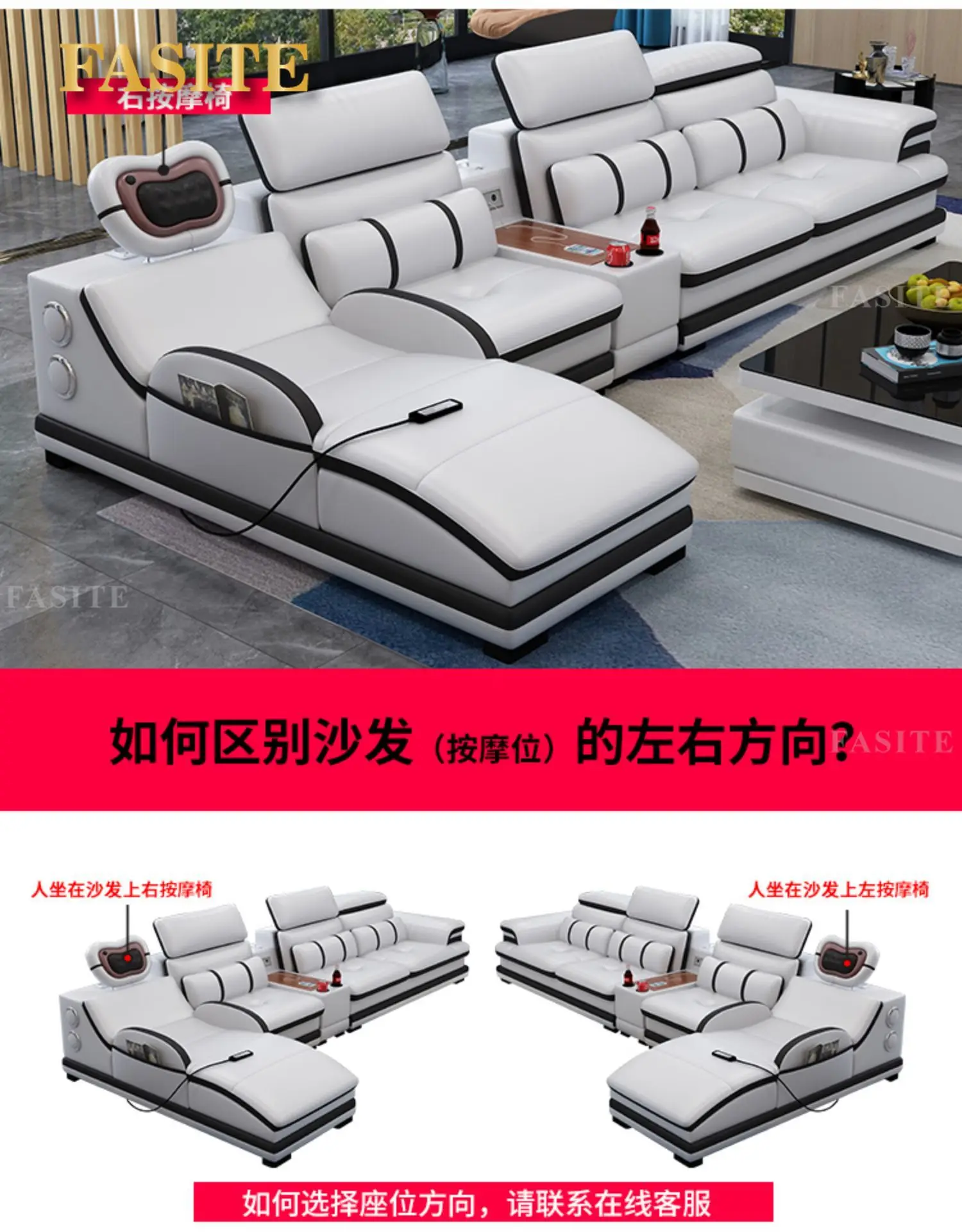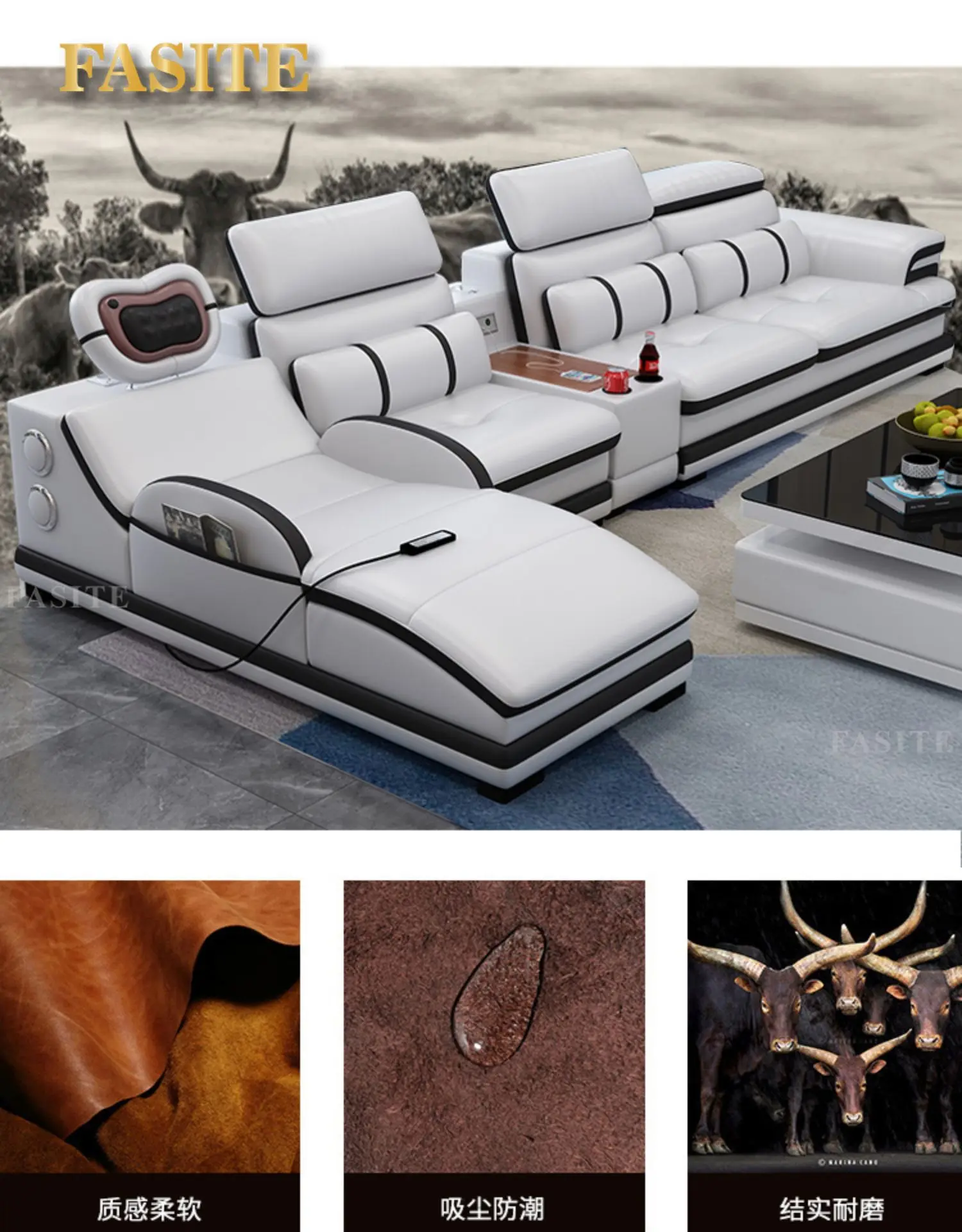 Multifunctional massage combined living room small apartment modern corner leather sofa