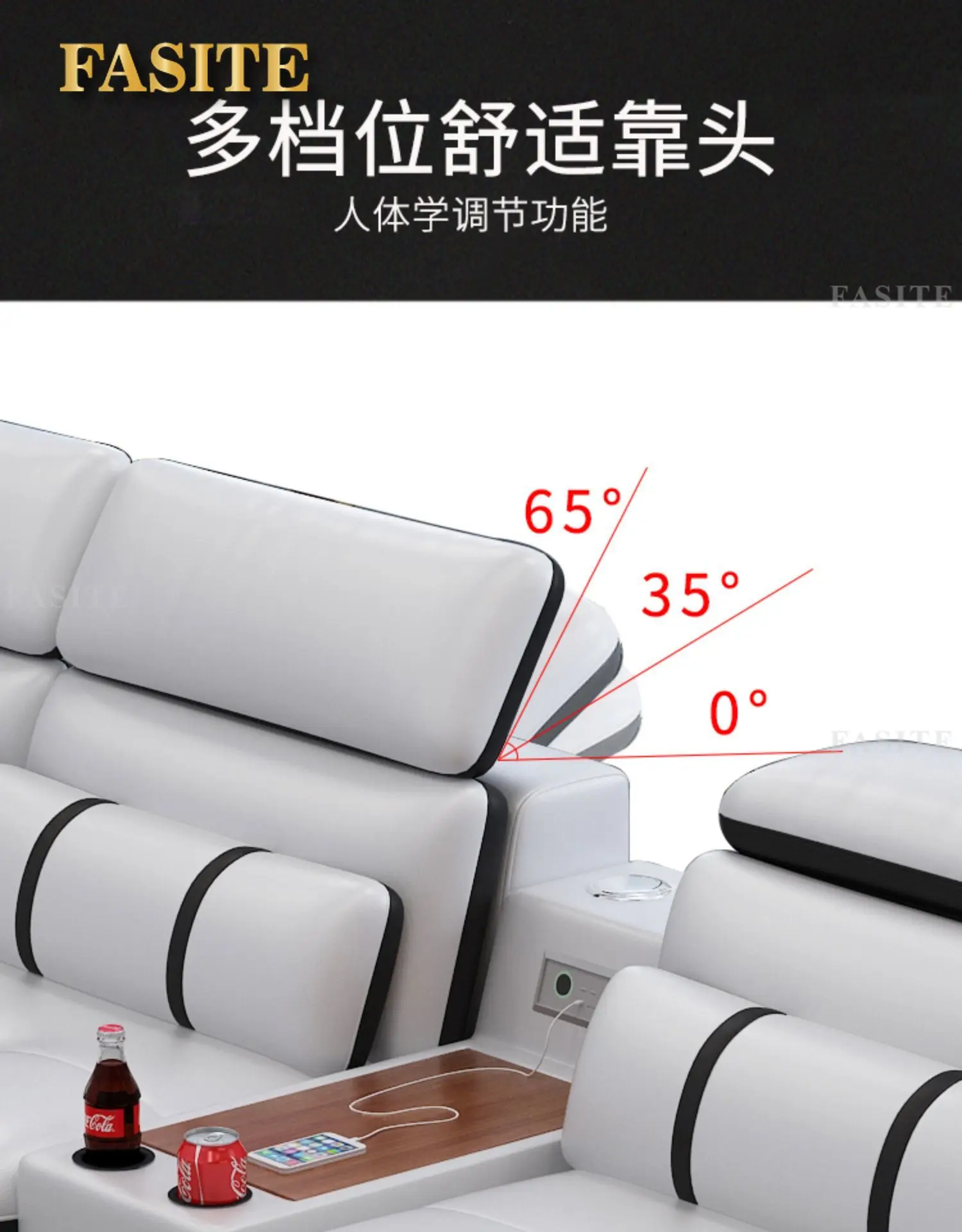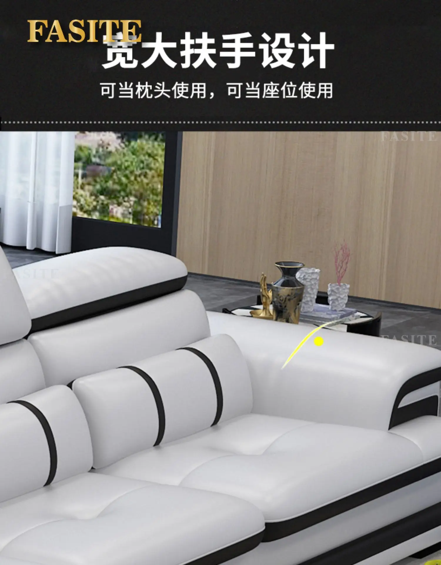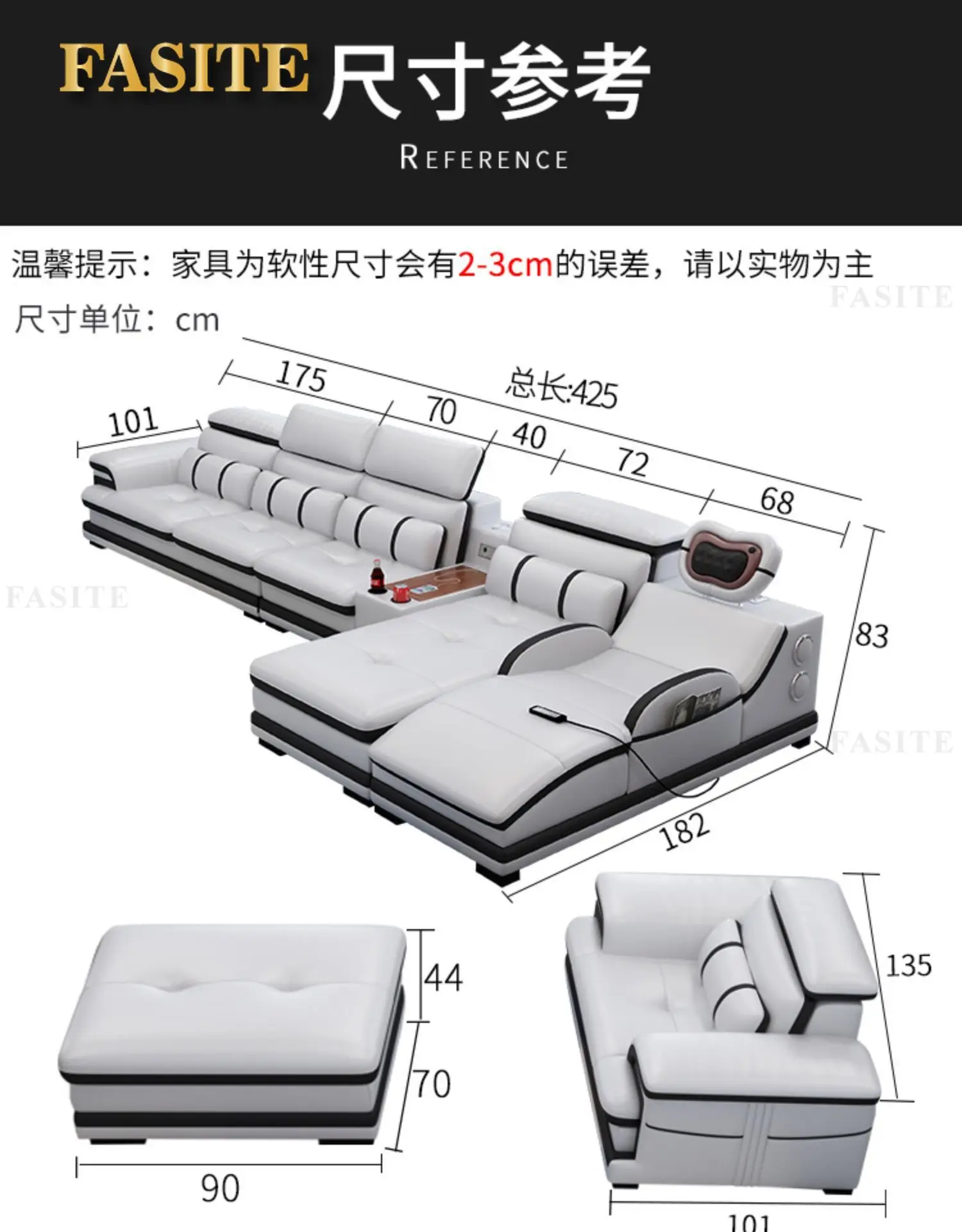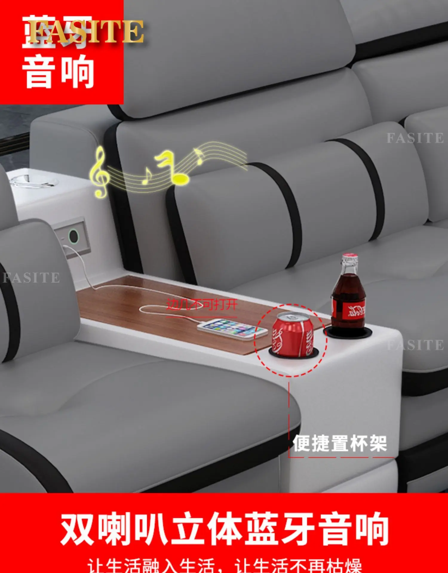 Multifunctional massage combined living room small apartment modern corner leather sofa