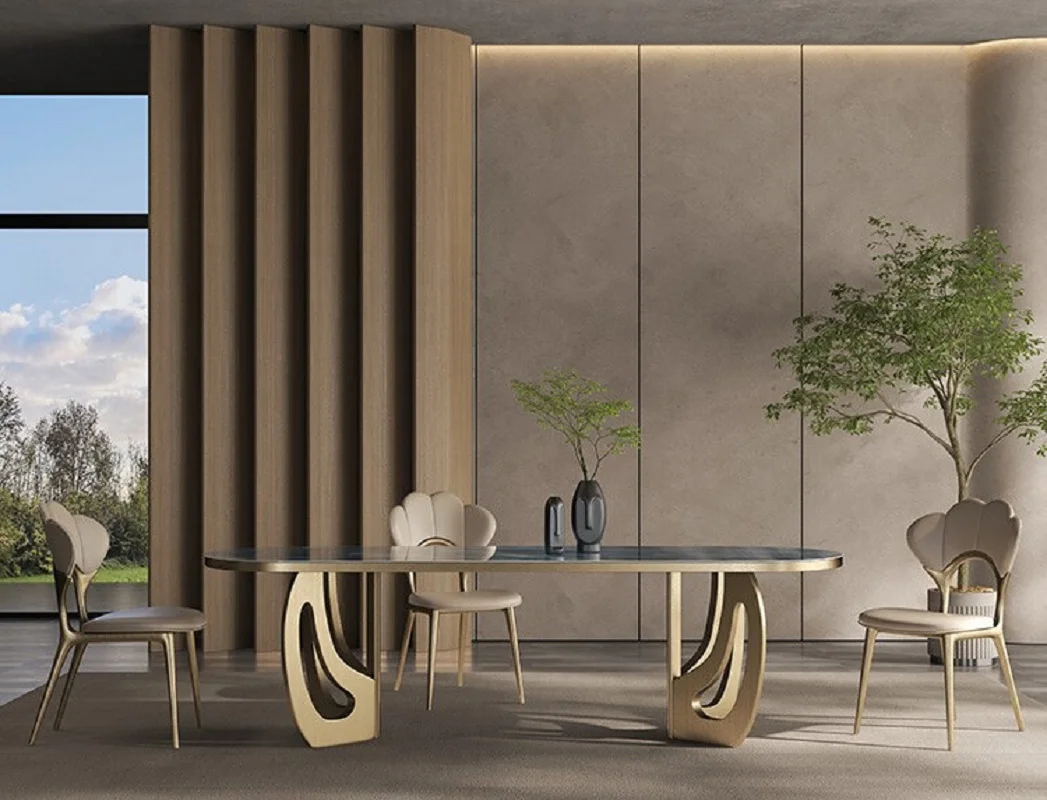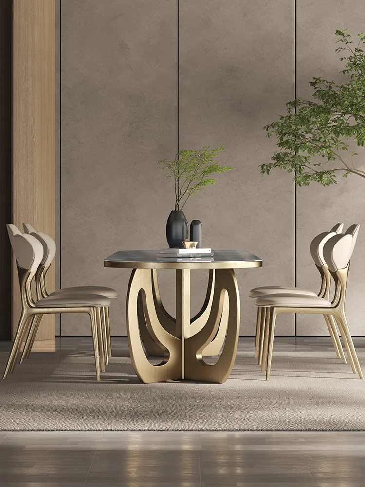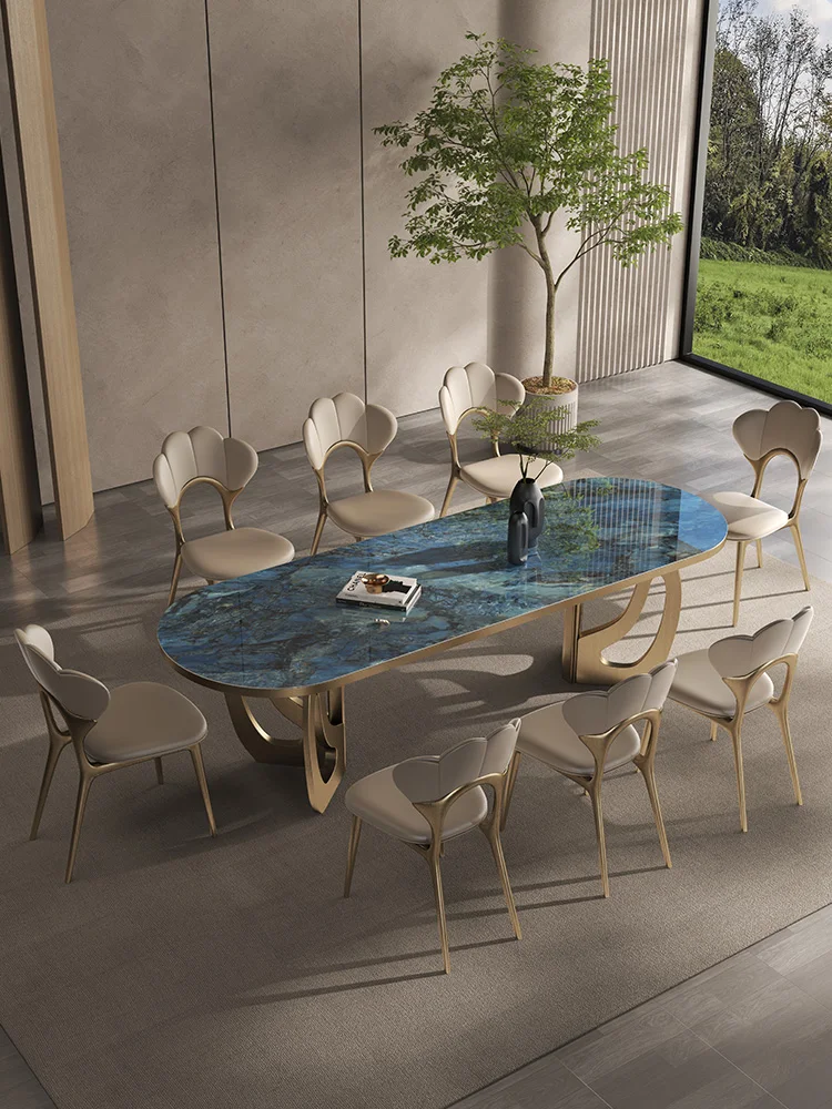 Natural microcrystalline stone dining table light luxury rectangular stone dining table rock slab marble household dining table