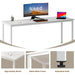 • A Desk That Lasts -- This large computer desk is made of E1 MDF material, which is highly durable and resistant to wear and tear. In addition to the basic steel frame structure, the centre of the desk has 3 extra steel frames to increase the load-bearing capacity. Adjustable glides also help keep the table stable on uneven floors