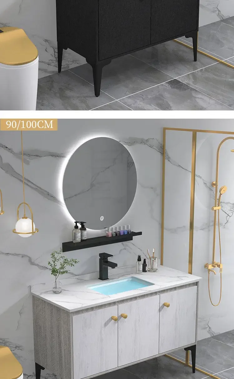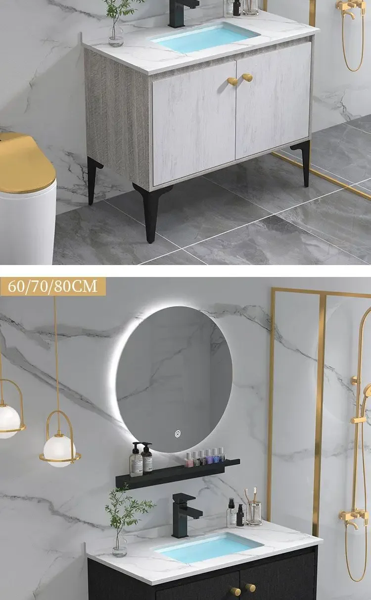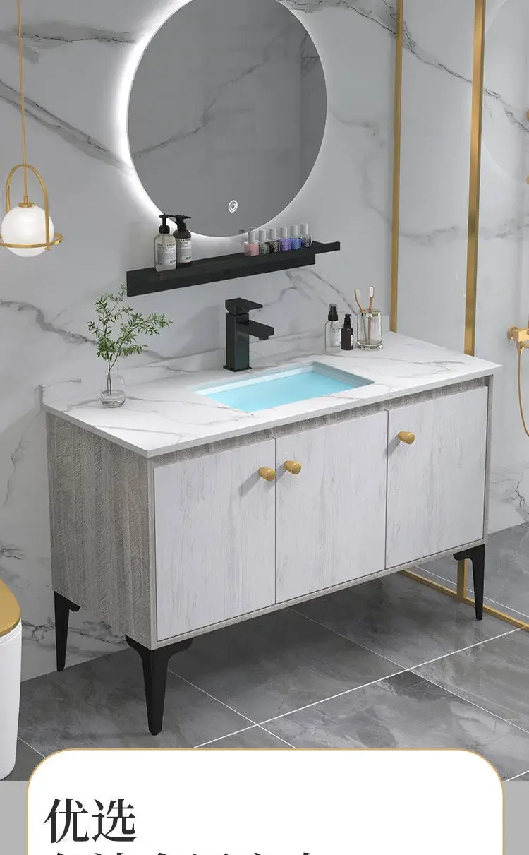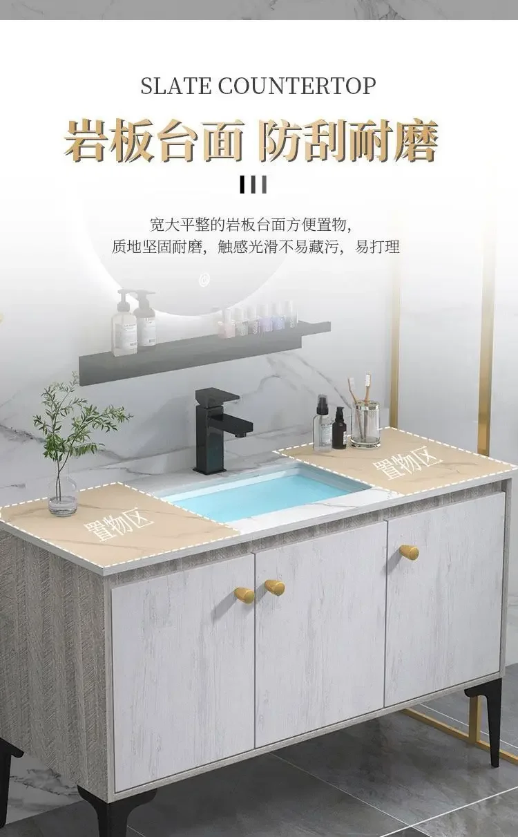 New Bathroom Cabinet Combination Rock Ceramic Integrated Basin Modern Simple Bathroom vanity with Sink Floor Room Furniture