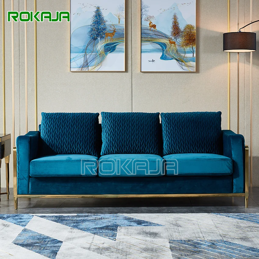 New Design Tufted Sofa Gold Stainless Steel Living Room Furniture Sets 6 Seater Sofa Set Modern Velvet Fabric Sofa