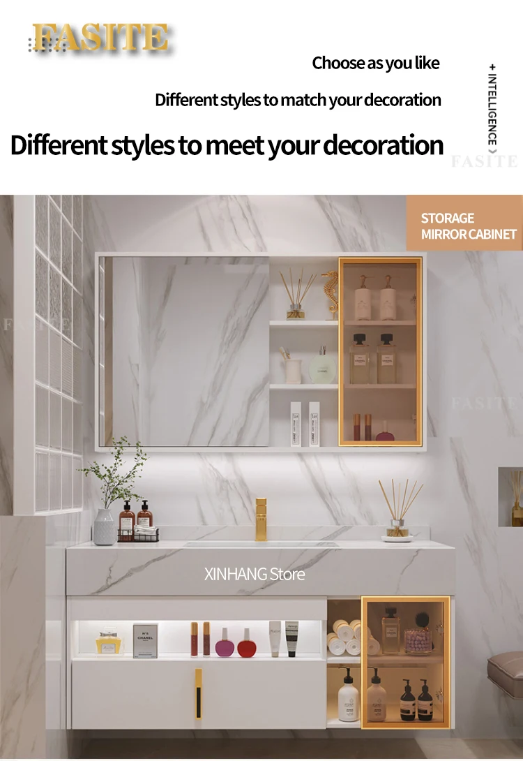 New Light Luxury Slate Bathroom Cabinet Intelligent Induction Double Washbasin Full Sets Solid Wood Furniture Custom Wash Table