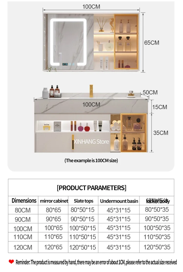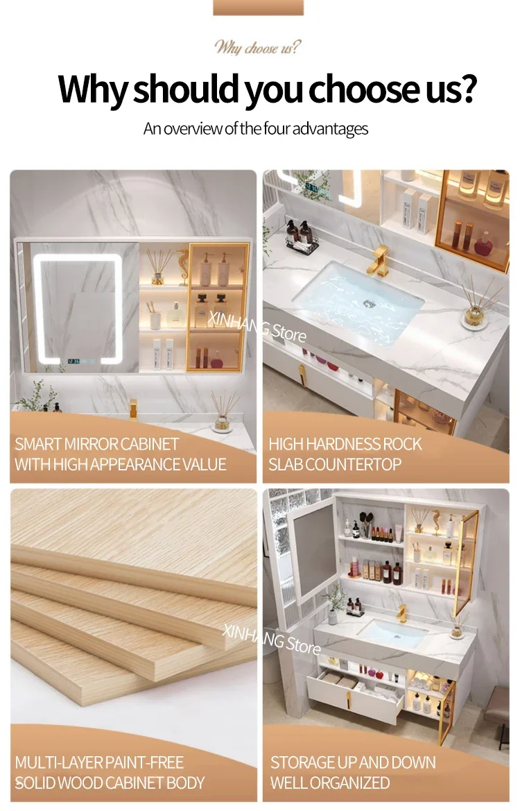 New Light Luxury Slate Bathroom Cabinet Intelligent Induction Double Washbasin Full Sets Solid Wood Furniture Custom Wash Table