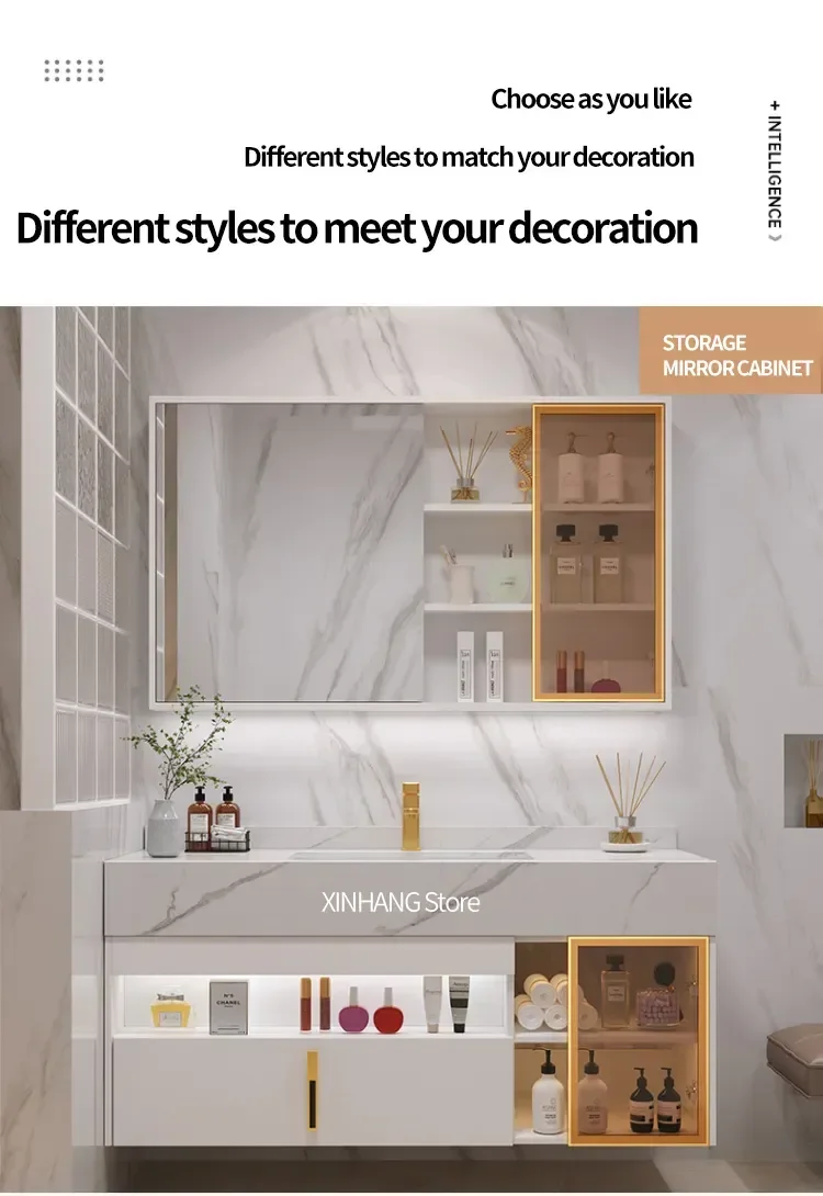 New Light Luxury Slate Bathroom Cabinet Intelligent Induction Double Washbasin Full Sets Solid Wood Furniture Custom Wash Table