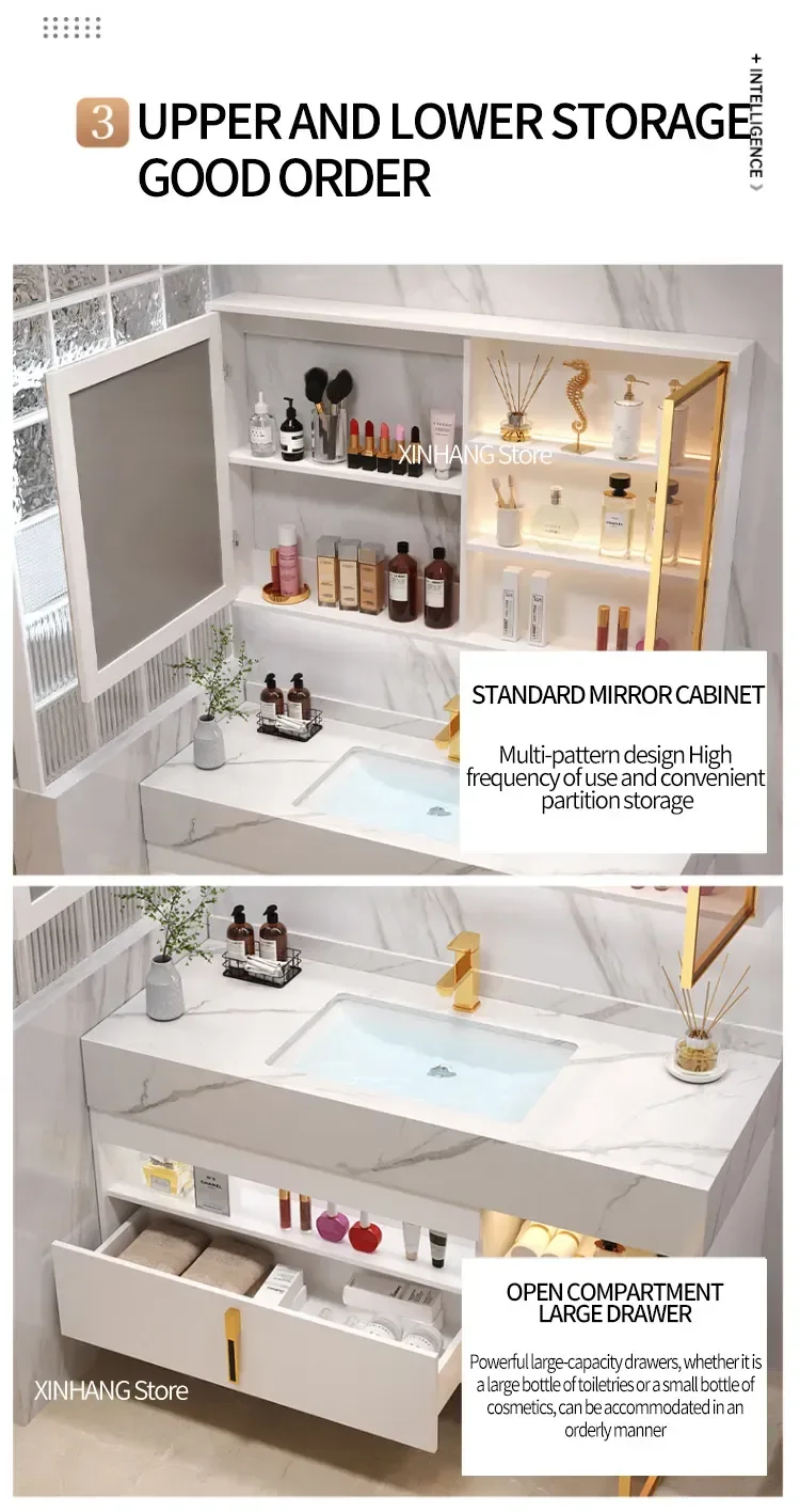 New Light Luxury Slate Bathroom Cabinet Intelligent Induction Double Washbasin Full Sets Solid Wood Furniture Custom Wash Table