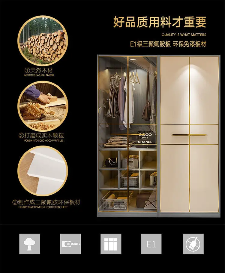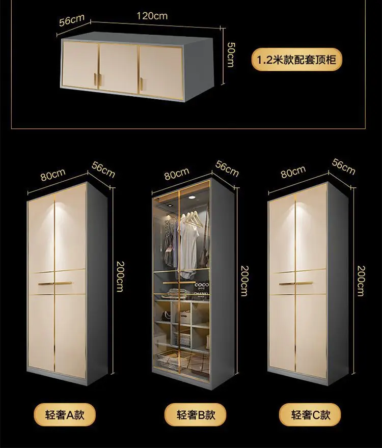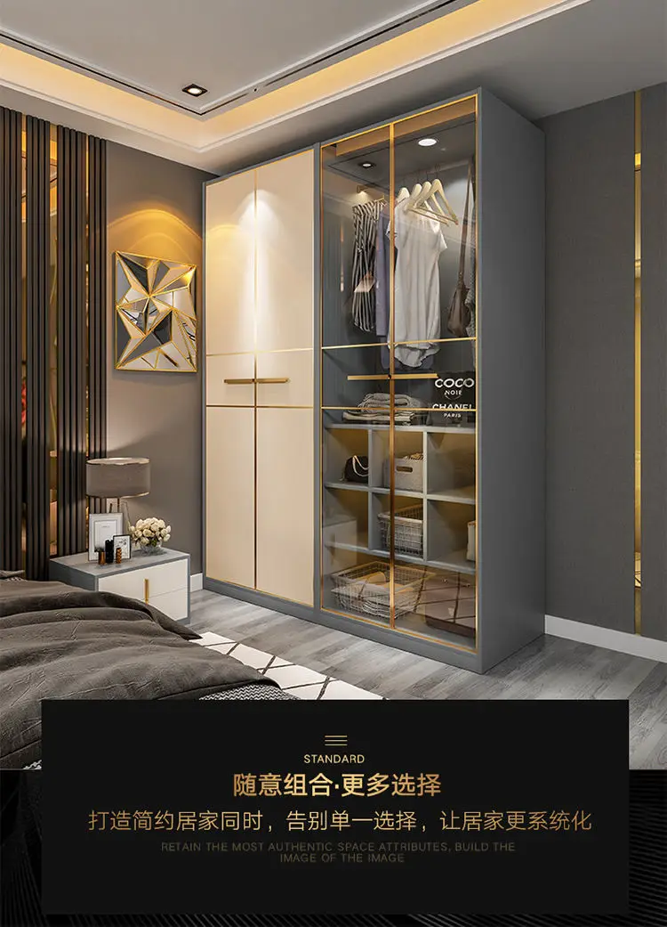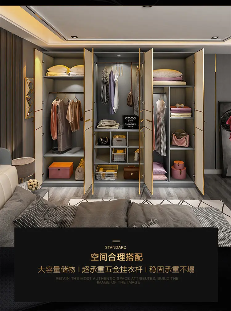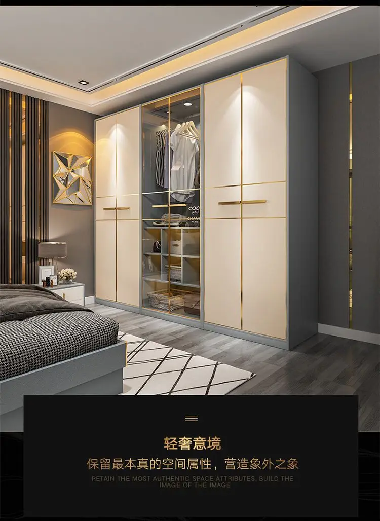New Light Luxury Wardrobe, Modern and Simple Home Bedroom, Solid Wood Adult Storage Combination, Size Wardrobe