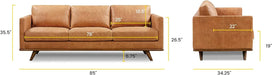 Nolita 85" Sofa in Full-Grain Pure-Aniline Italian Tanned Leather in Cognac Tan