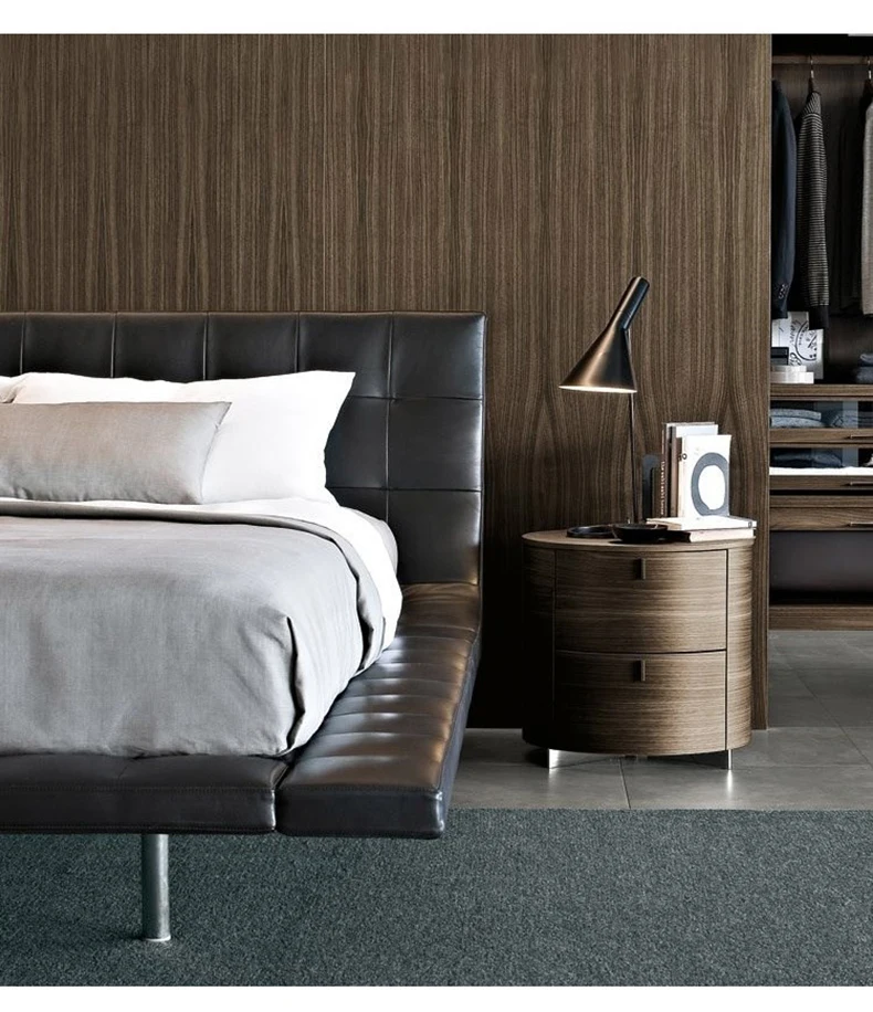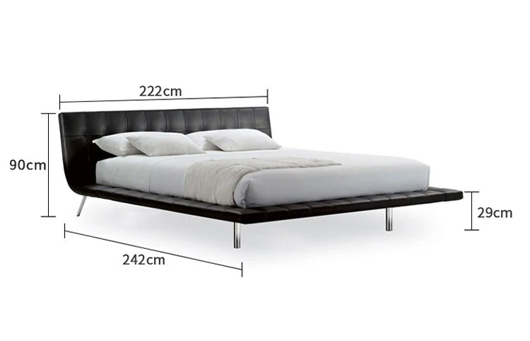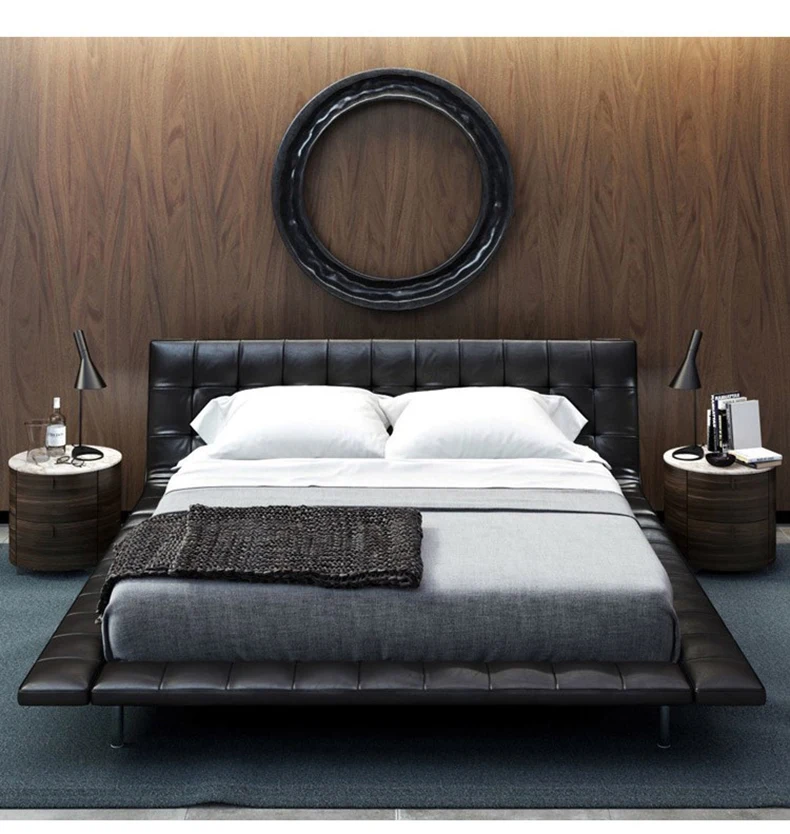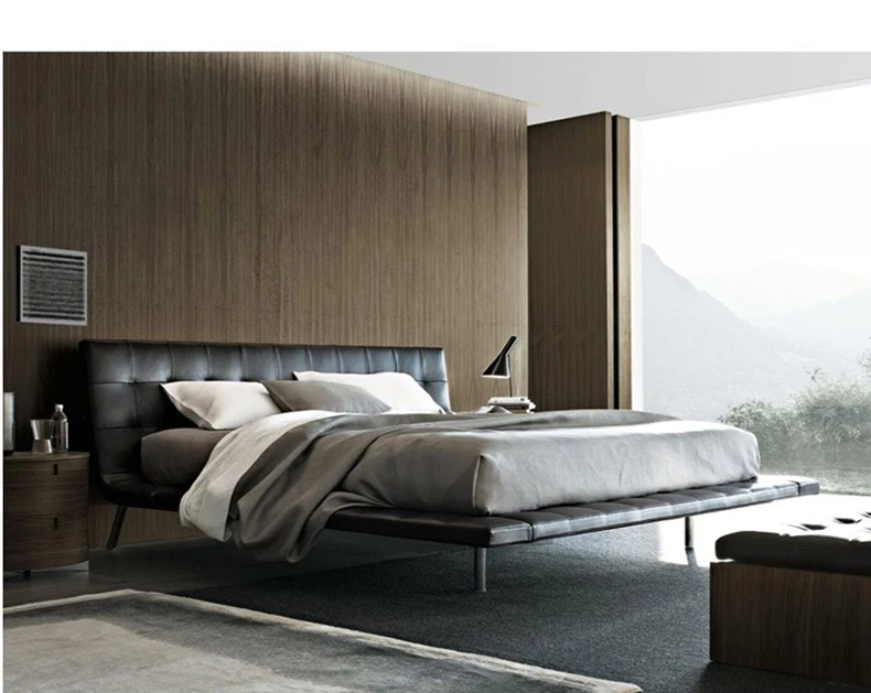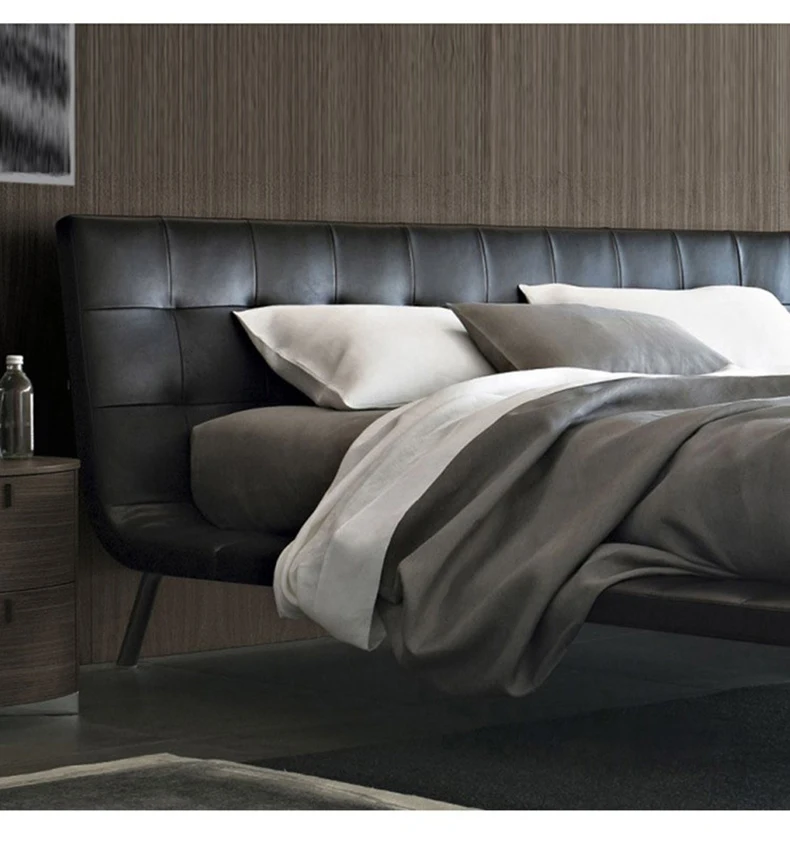 Nordic Italian Genuine Leather Bed Frame Solid Wood Queen Headboard 150 Modern King Size Beds Furniture Villa Cama Matrimonial