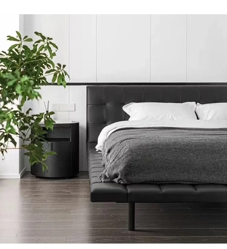 Solid Bed Frame Luxury Modern Leather Home Furniture Bedroom Set Design King Size Bed Soft Headboard Lit 2 Personnes Apartment