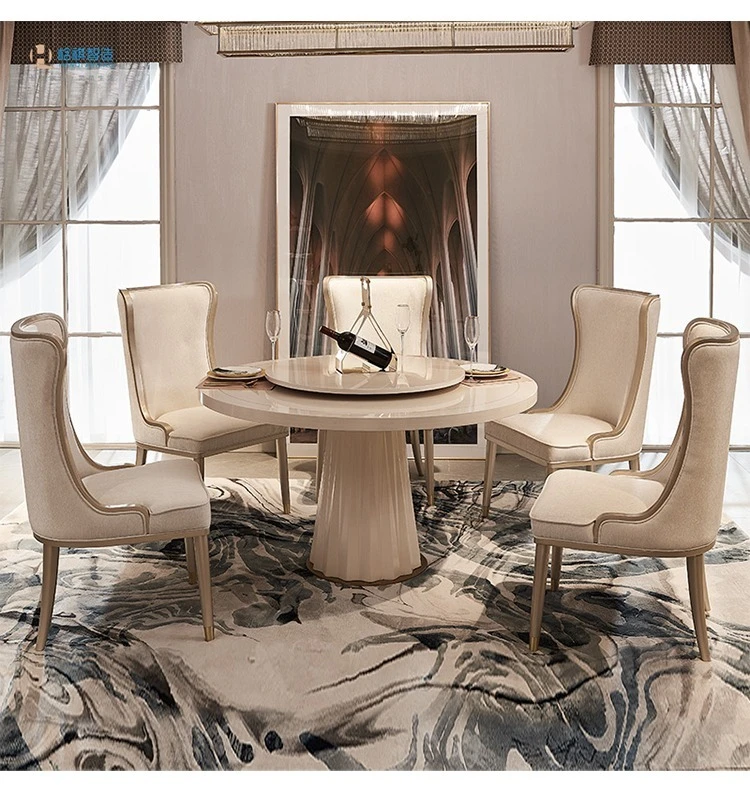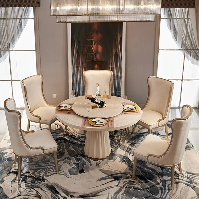 Nordic Light Luxury Solid Wood Dining Table Modern Minimalist Round Table With Turntable Living Room Villa Combined Furniture