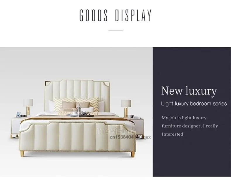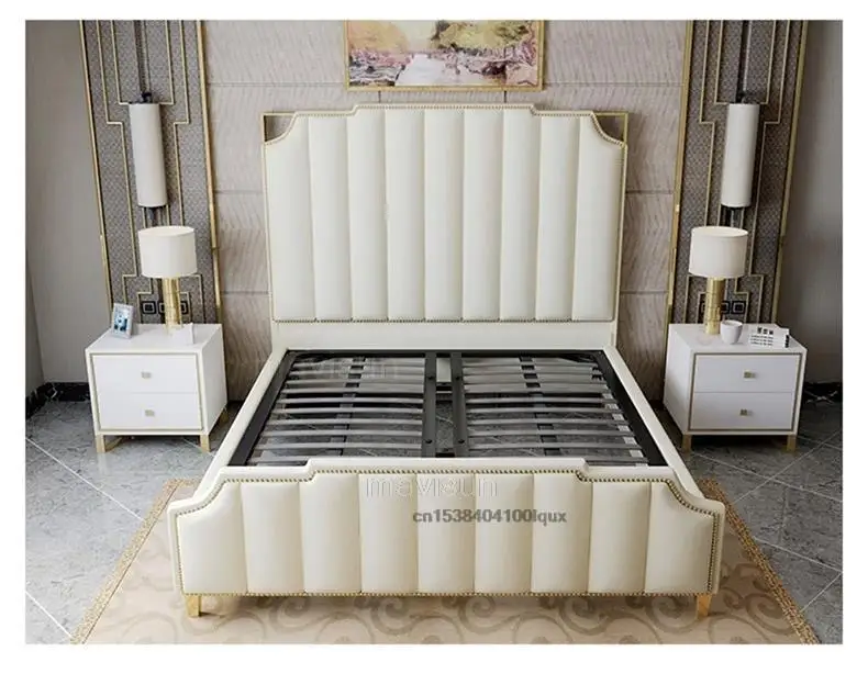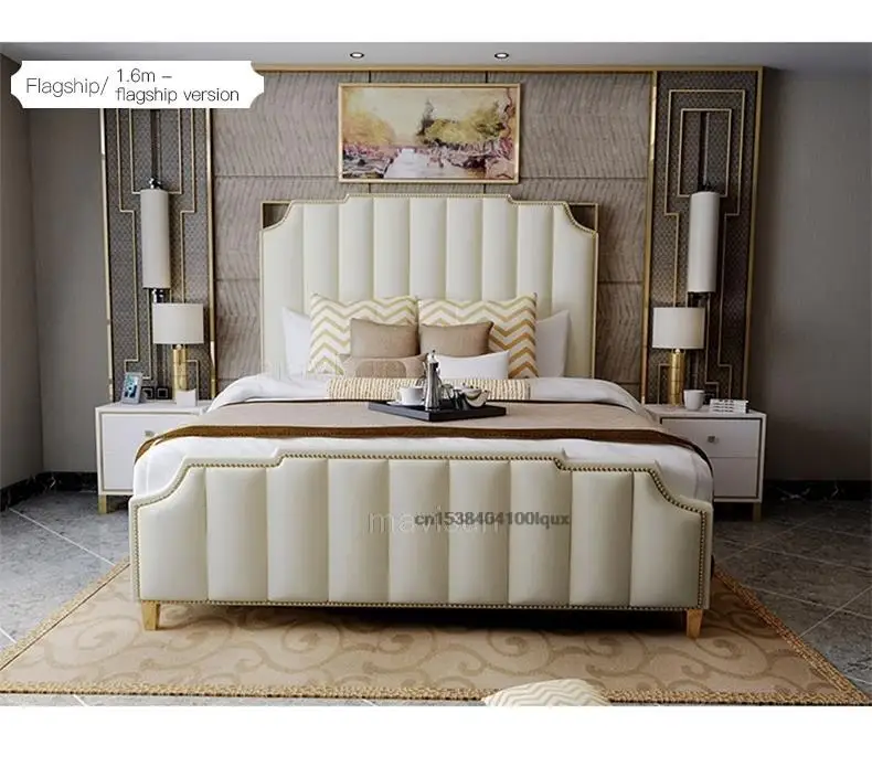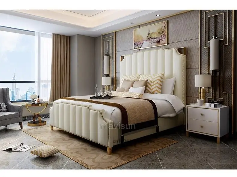 Nordic Modern Luxury Double Bed For Bedroom Furniture Sets Storage Leather Bad+Mattress+2 Nightstand
