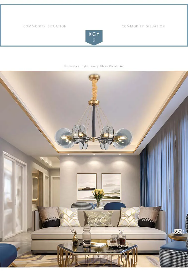 Nordic Postmodern LED Glass Chandelier Living Atmospheric Light Luxury Lamps Bedroom Hotel Shop Restaurant Bar Chandelier