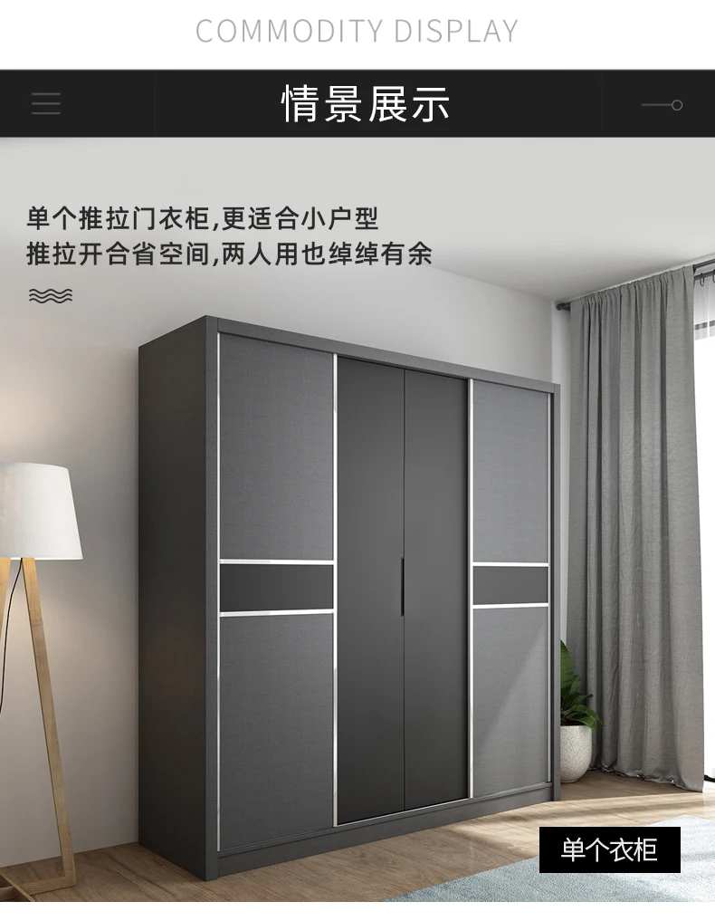 Nordic sliding door wardrobe modern simple and economical assembly household bedroom overall large wardrobe
