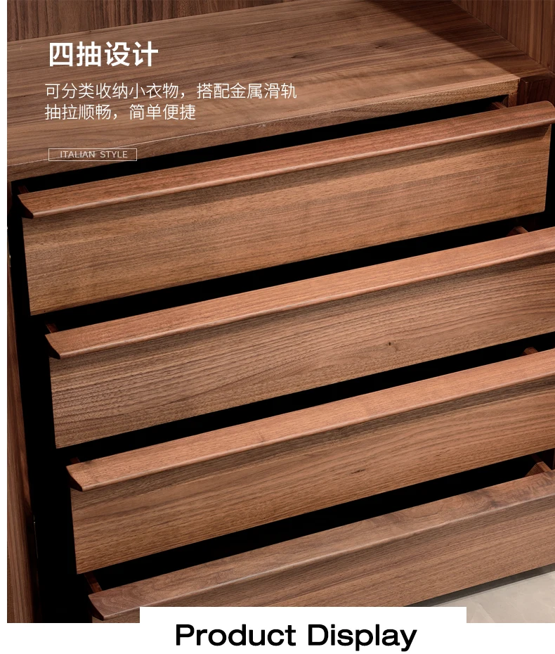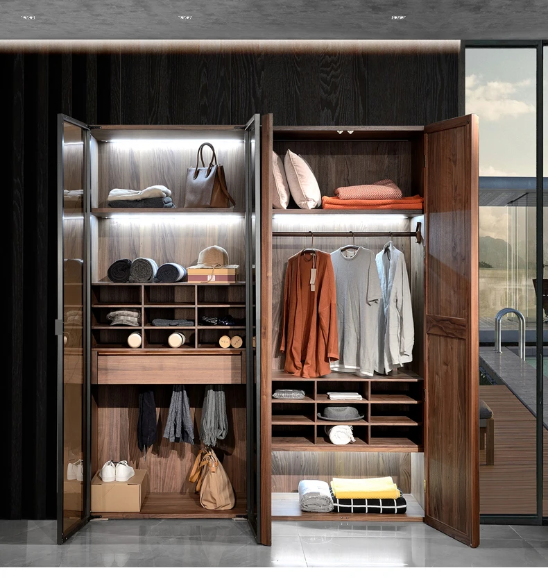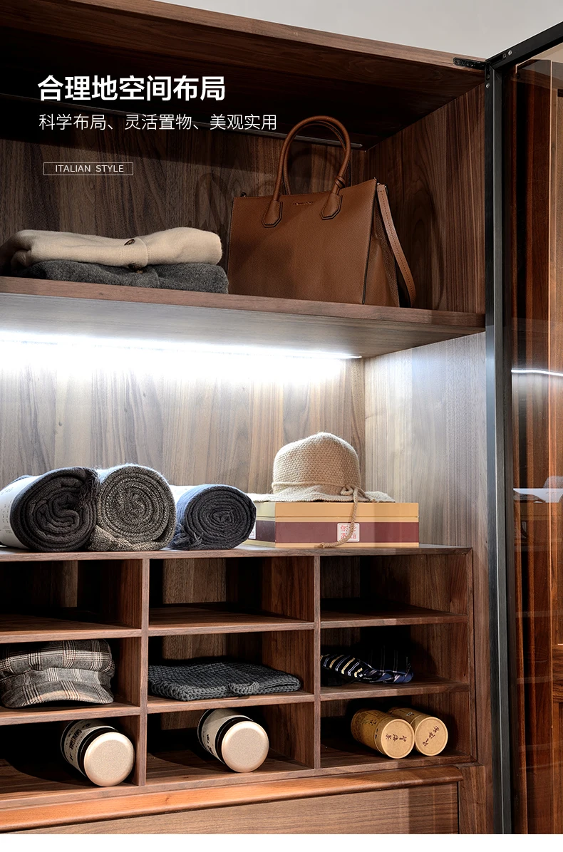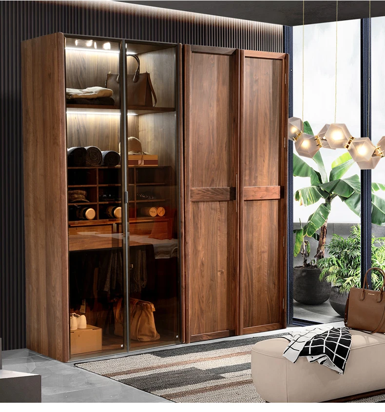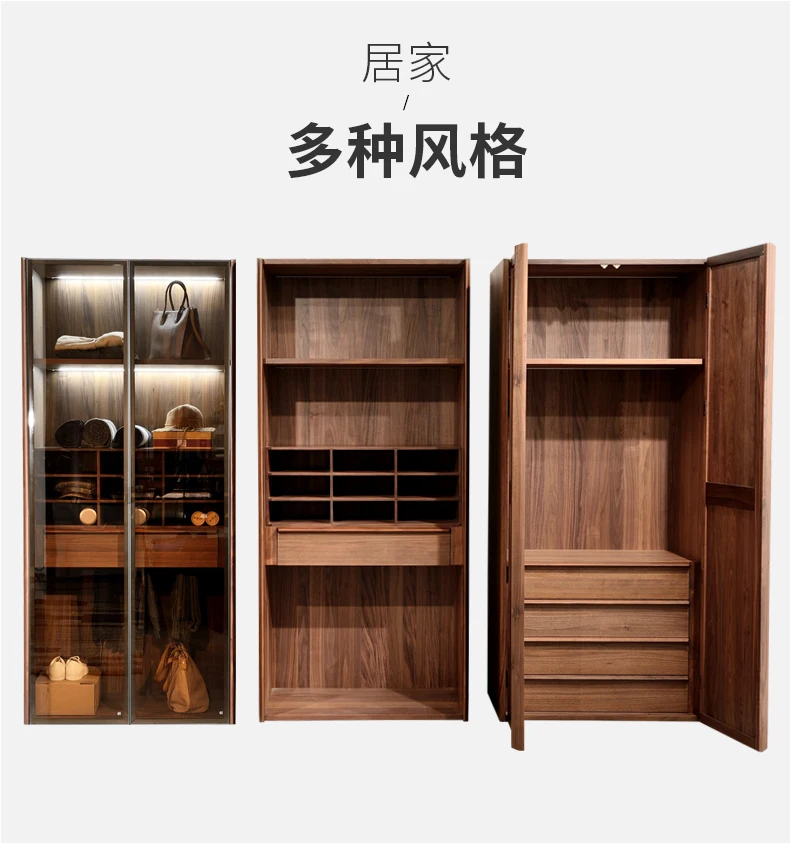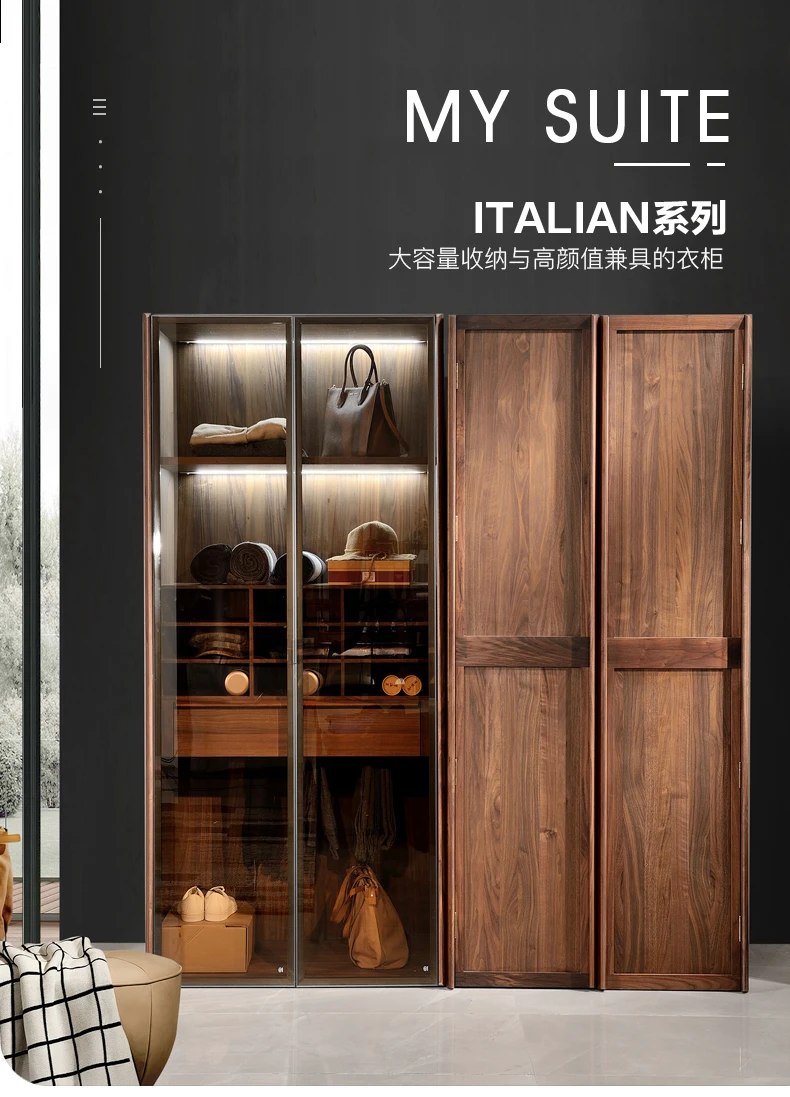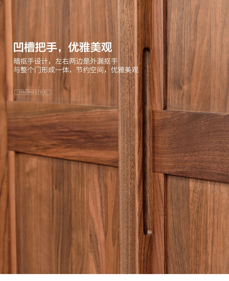 North American black walnut two-door wardrobe Italian minimalist all solid wood large wardrobe home bedroom cabinet adult Nordic